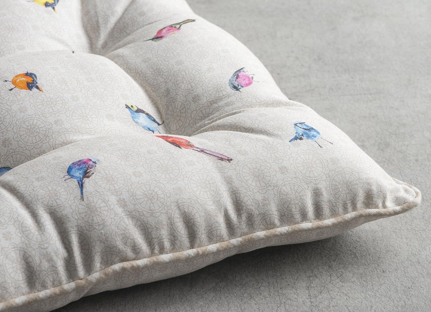 Maison d' Hermine Chair Pads for Dining Chairs Cotton Outer Fabric and Poly Filling 16"x16" Patio Seat Cushions for Furniture with Ties Home Chair Party Hall Farmhouse (Rose Garden, Pack of 2)(Birdies on Wire)