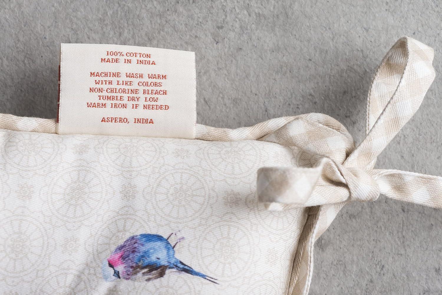 Complete Package: Set includes 2 cotton chair cushions with ties, each 16″x16″. Designed in Europe and made in India, these decorative seat pads add comfort and charm to any chair in your home