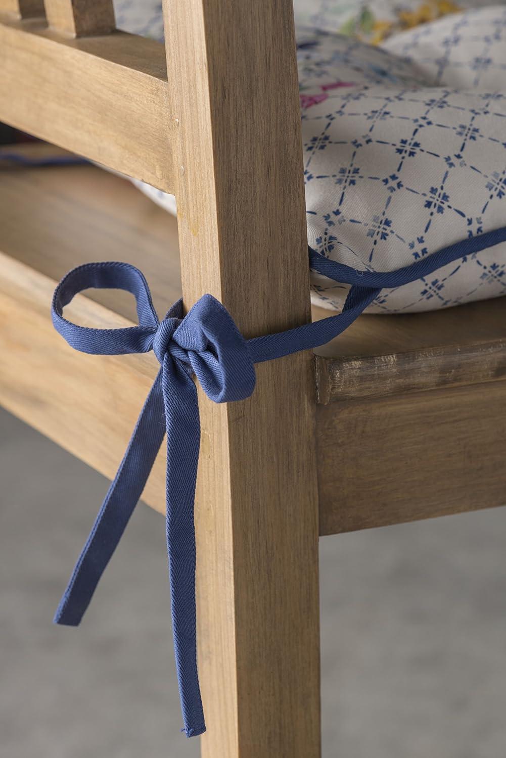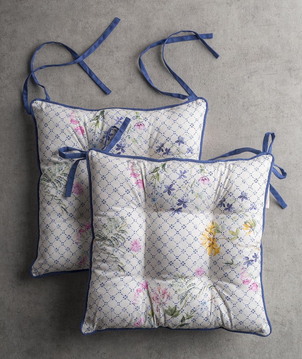 Complete Package: Set includes 2 cotton chair cushions with ties, each 16″x16″. Designed in Europe and made in India, these decorative seat pads add comfort and charm to any chair in your home