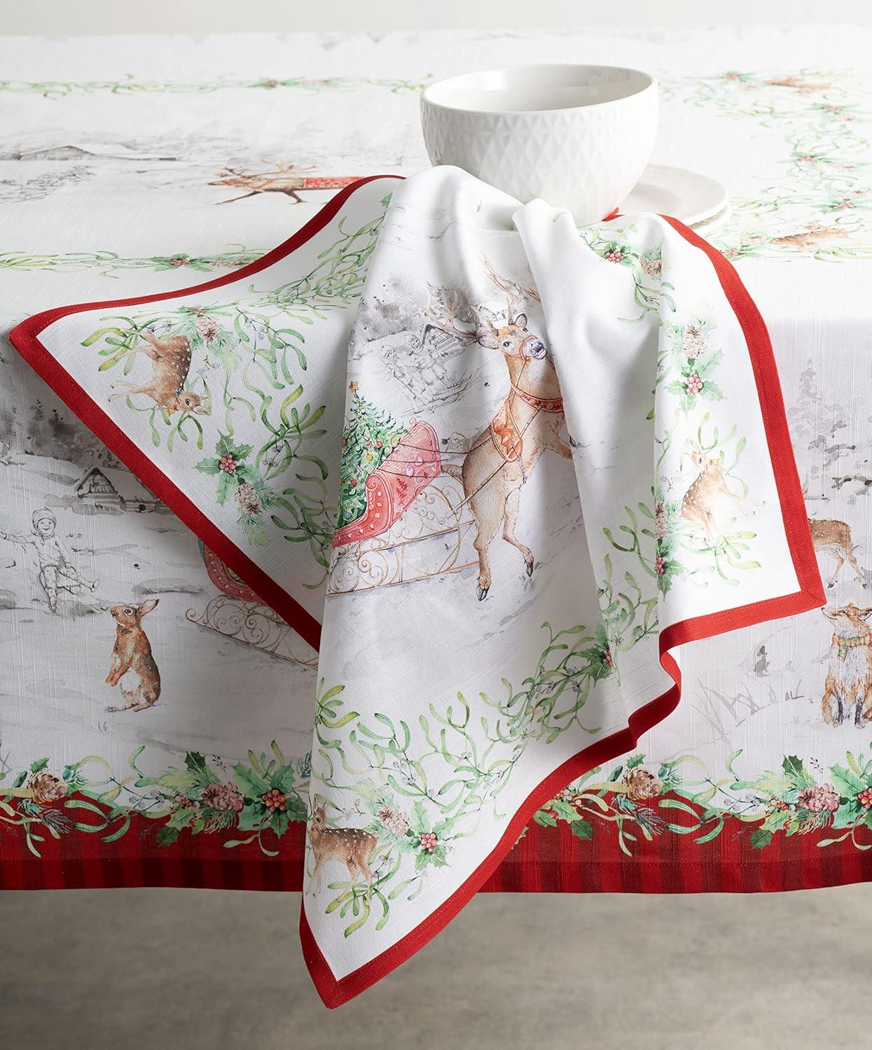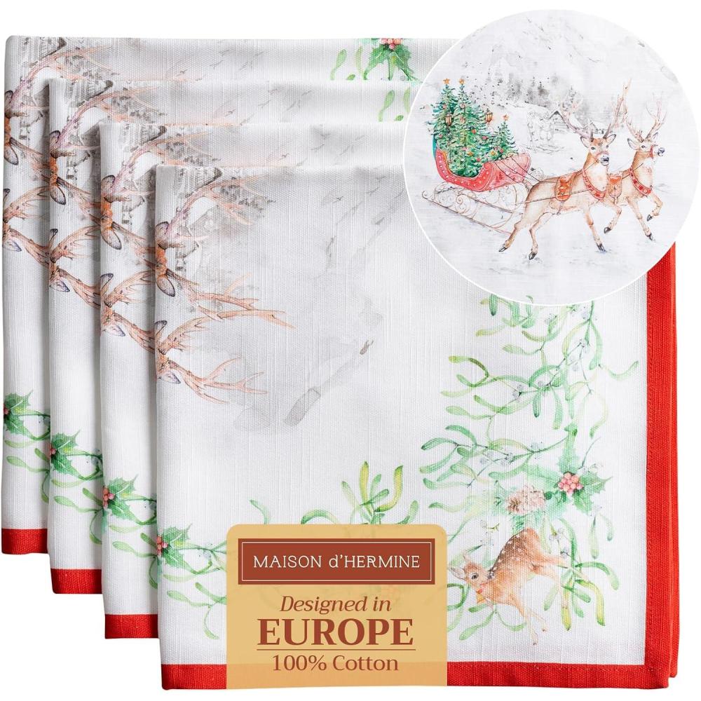 Maison d’ Hermine Cloth Napkins Set of 4 100% Cotton for Thanksgiving Christmas Decorations Everyday Reusable Square Fall Napkins Cloth Washable Dinner Party (Christmas Joy, 20″x20″)(04 – Christmas Tradition)