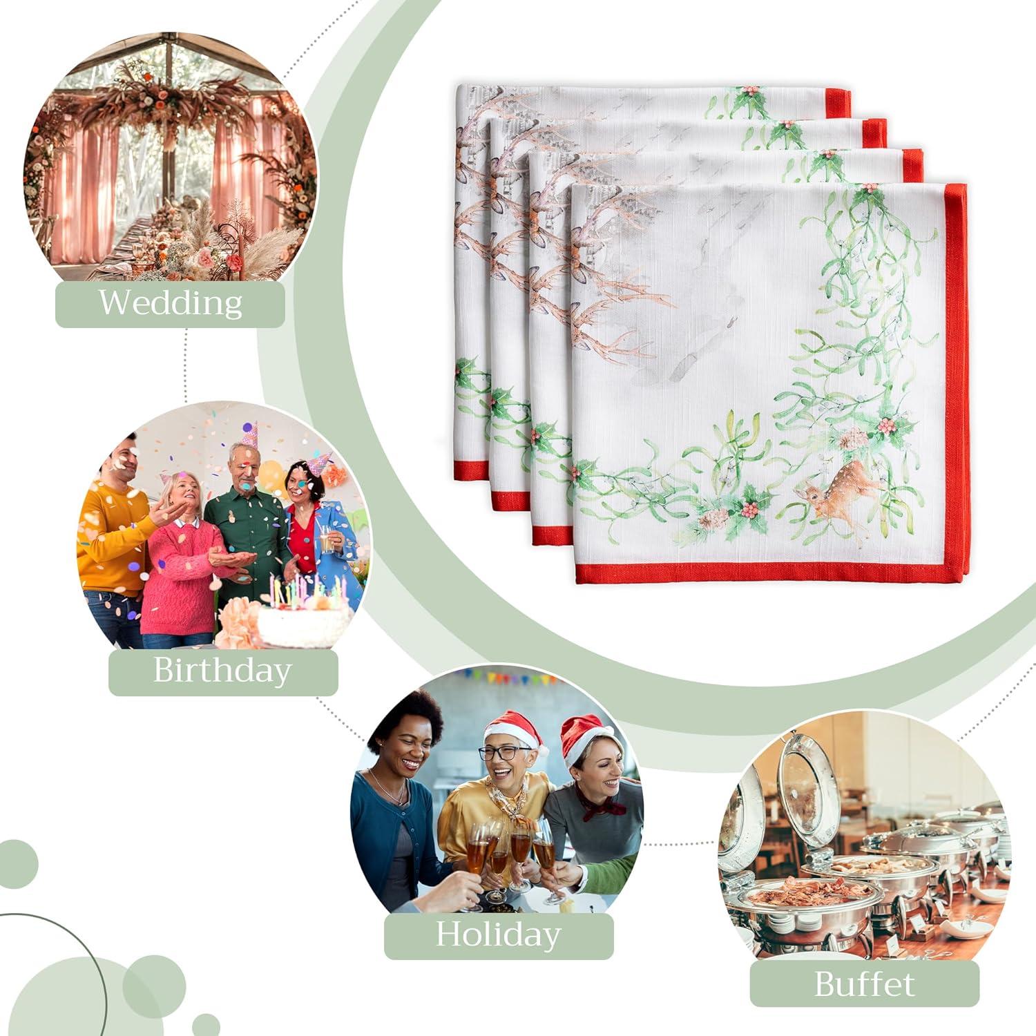 Maison d' Hermine Cloth Napkins Set of 4 100% Cotton for Thanksgiving Christmas Decorations Everyday Reusable Square Fall Napkins Cloth Washable Dinner Party (Christmas Joy, 20"x20")(04 - Christmas Tradition)