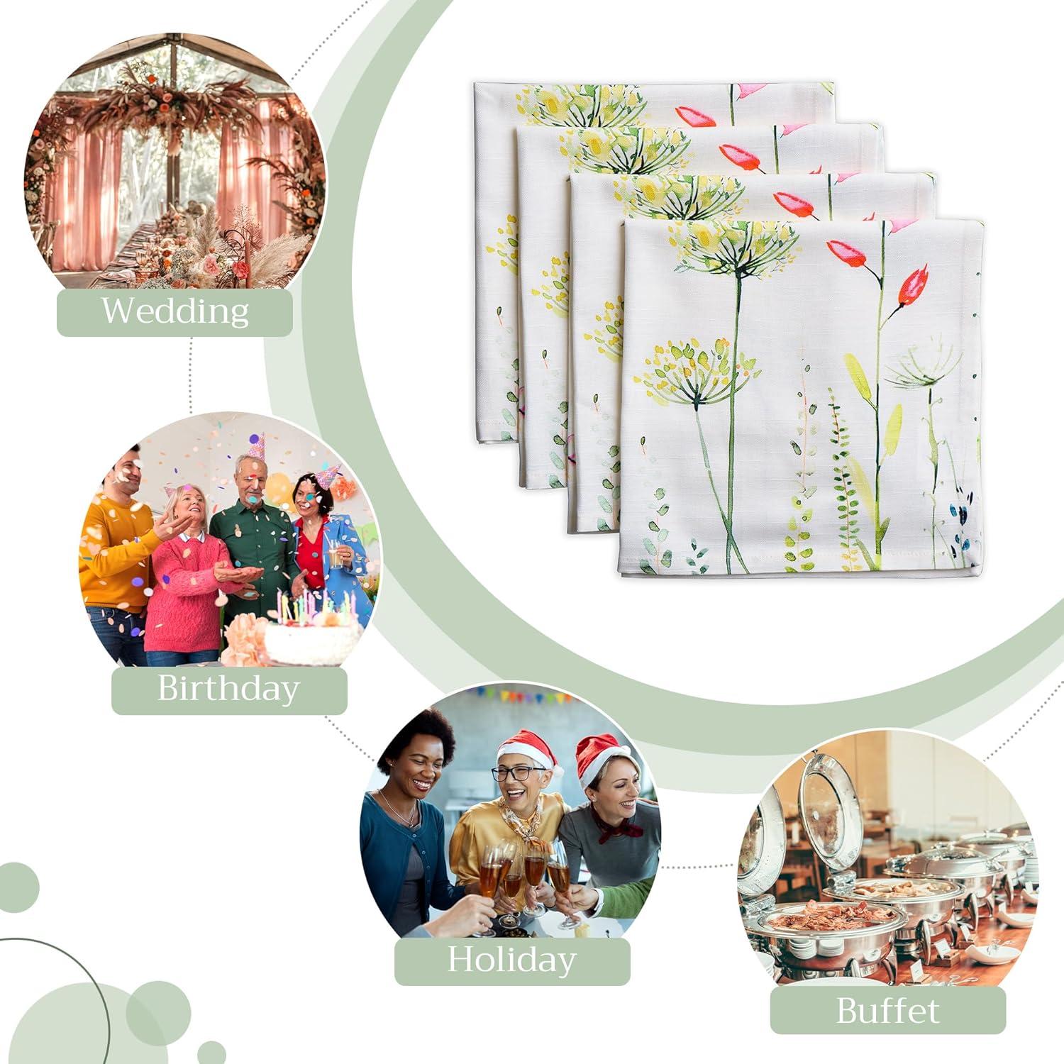 Maison d' Hermine Cloth Napkins Set of 4 100% Cotton for Thanksgiving Christmas Decorations Everyday Reusable Square Fall Napkins Cloth Washable Dinner Party (Christmas Joy, 20"x20")(08 - Botanical Fresh)