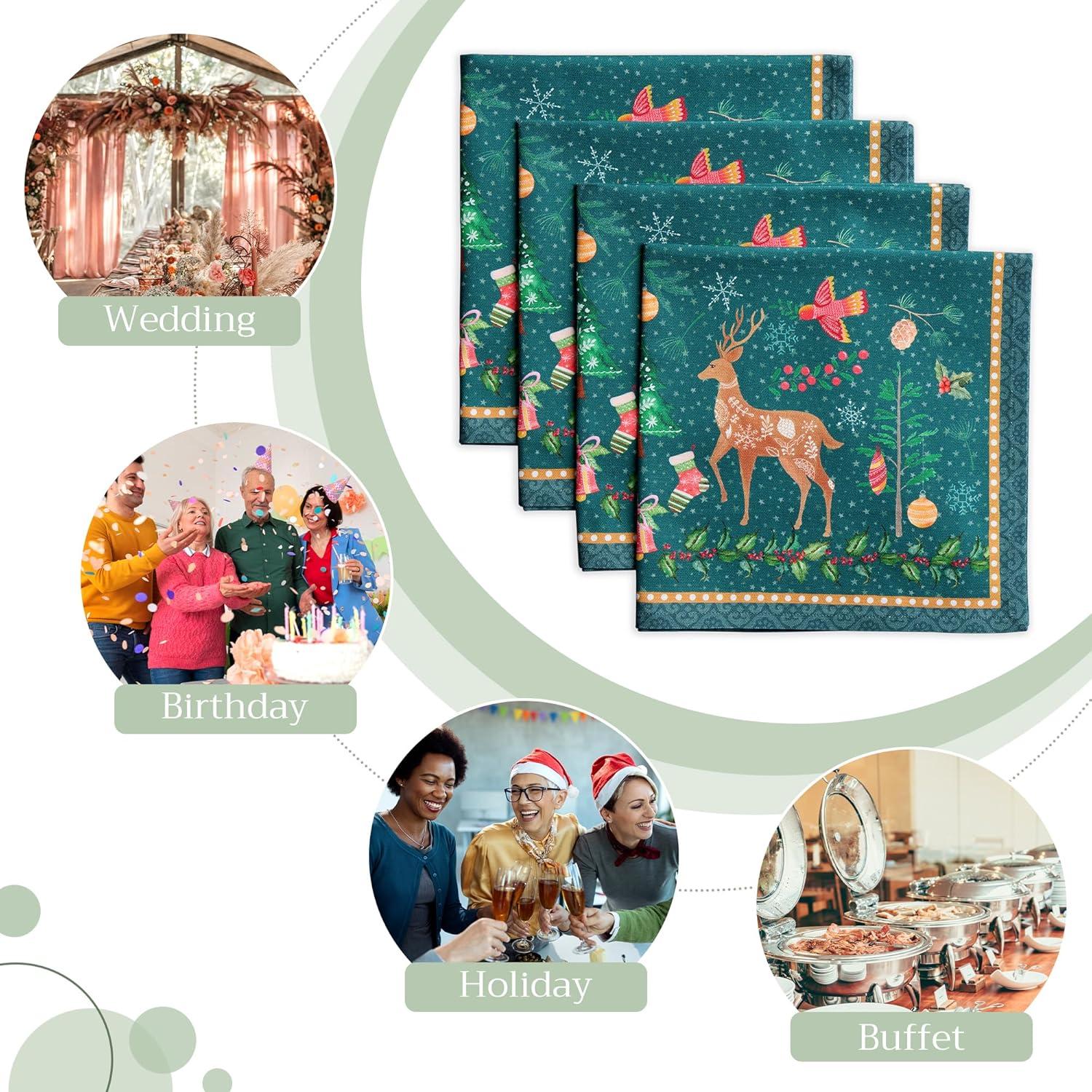 Maison d' Hermine Cloth Napkins Set of 4 100% Cotton for Thanksgiving Christmas Decorations Everyday Reusable Square Fall Napkins Cloth Washable Dinner Party (Christmas Joy, 20"x20")(16 - Hygge Christmas)