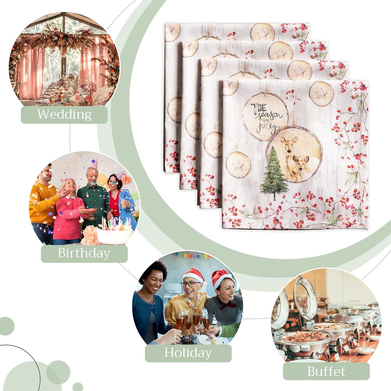 Maison d’ Hermine Cloth Napkins Set of 4 100% Cotton for Thanksgiving Christmas Decorations Everyday Reusable Square Fall Napkins Cloth Washable Dinner Party (Christmas Joy, 20″x20″)(21 – Mountain Life)
