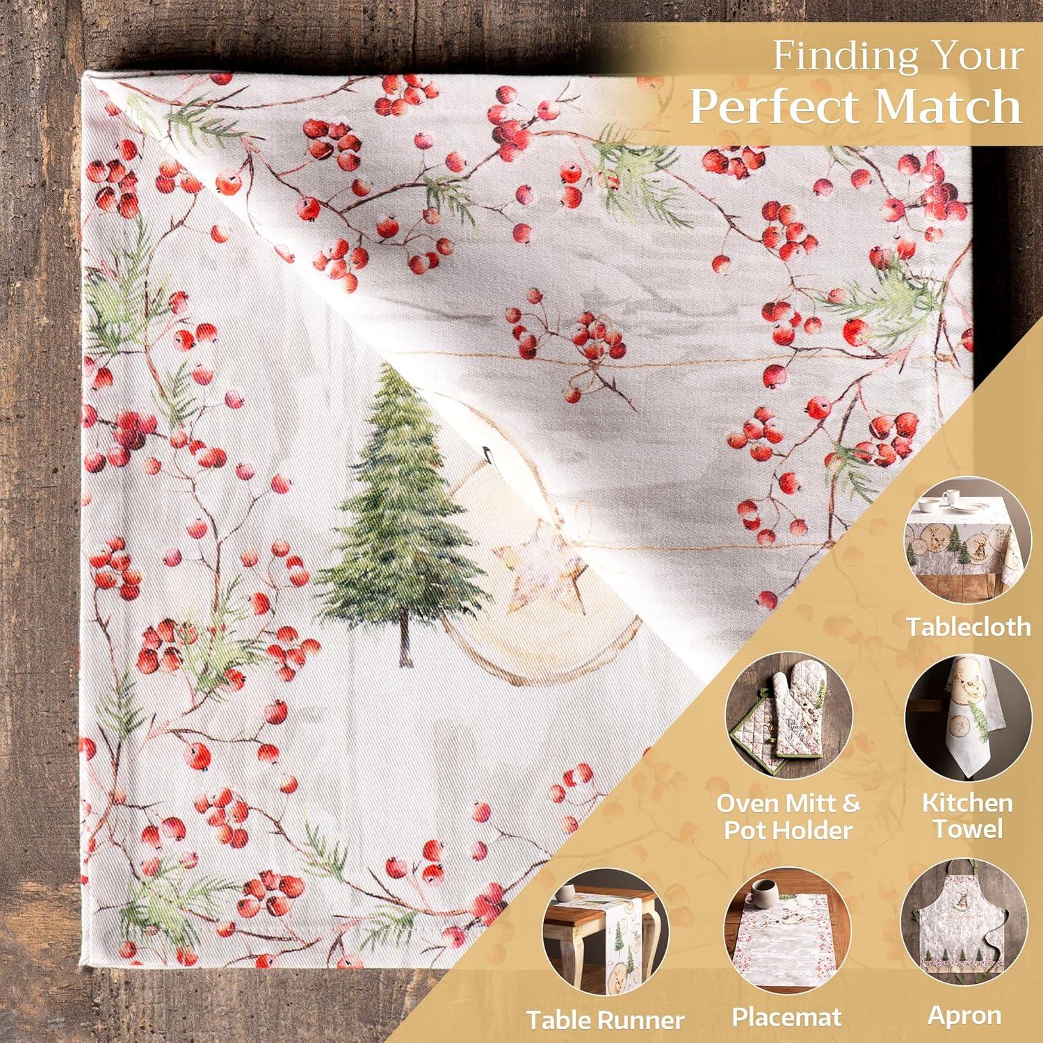 Maison d' Hermine Cloth Napkins Set of 4 100% Cotton for Thanksgiving Christmas Decorations Everyday Reusable Square Fall Napkins Cloth Washable Dinner Party (Christmas Joy, 20"x20")(21 - Mountain Life)