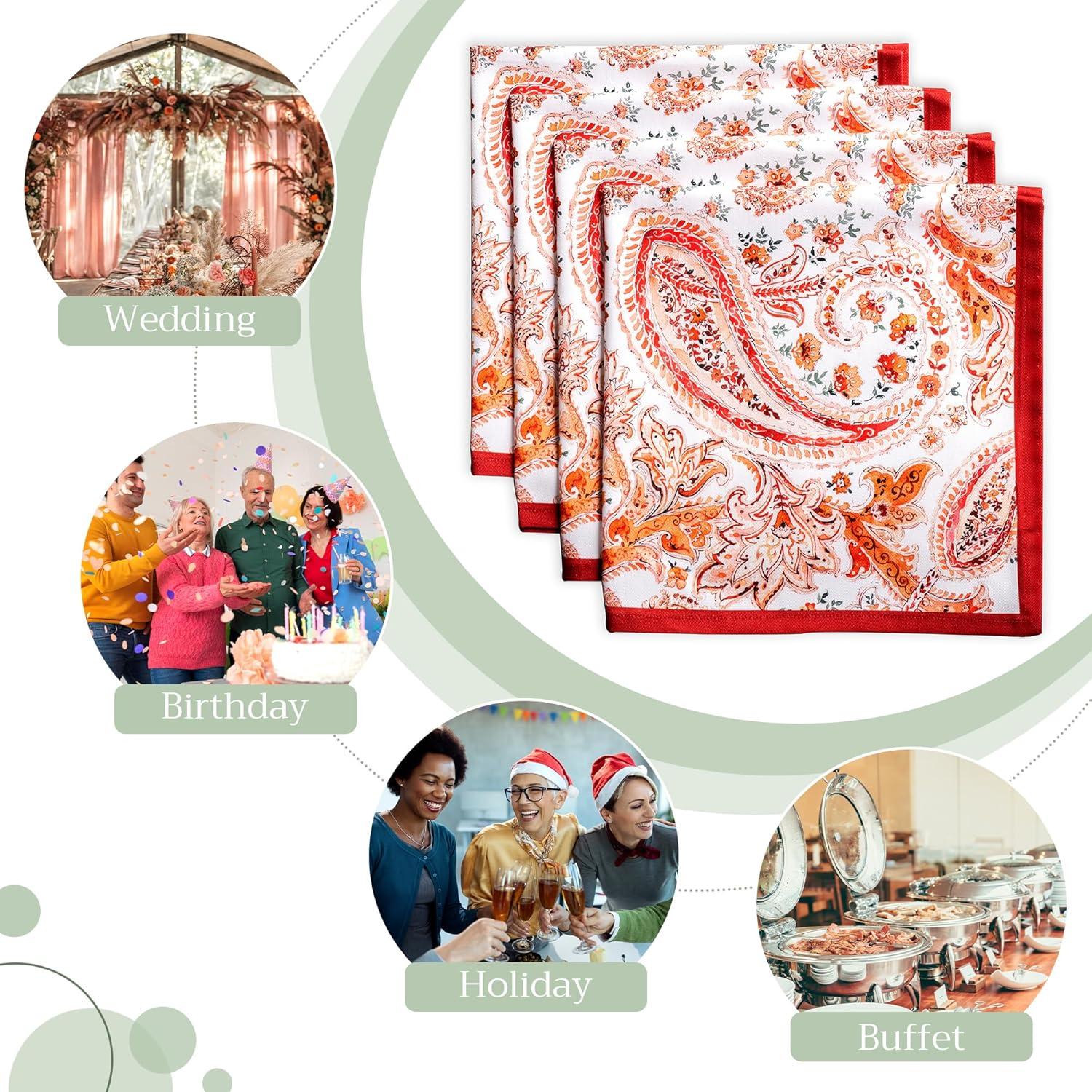 Package Includes: Set of 4 cloth napkins, each 20″x20″. Soft and elegant, these square napkins add charm to any table setting—perfect for Thanksgiving decor, Christmas decorations, Halloween decorations, or everyday use. Designed in Europe, made in India