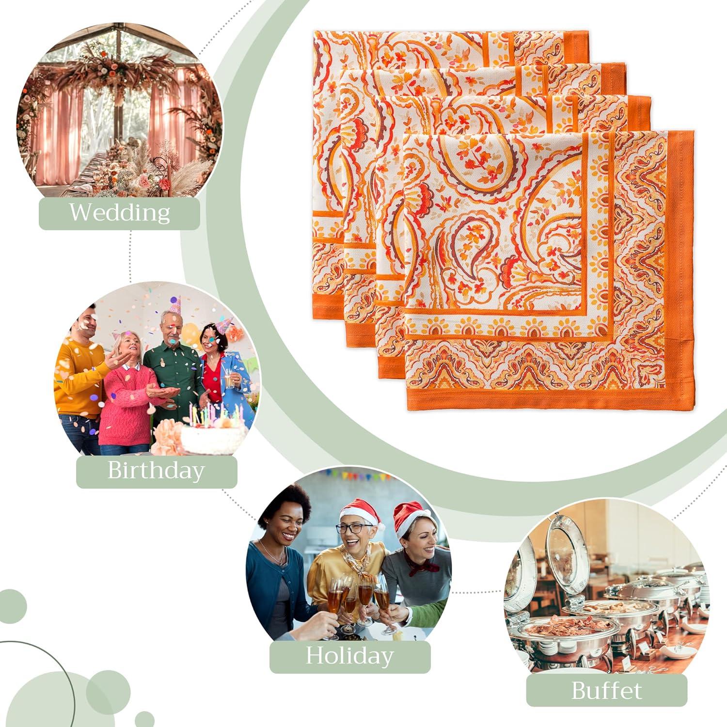 Maison d’ Hermine Cloth Napkins Set of 4 100% Cotton for Thanksgiving Decorations Everyday Reusable Square Fall Napkins Cloth Washable Dinner Party Wedding (Pumpkin Garden – Dark Green, 20″x20″)(09 – Palatial Paisley)