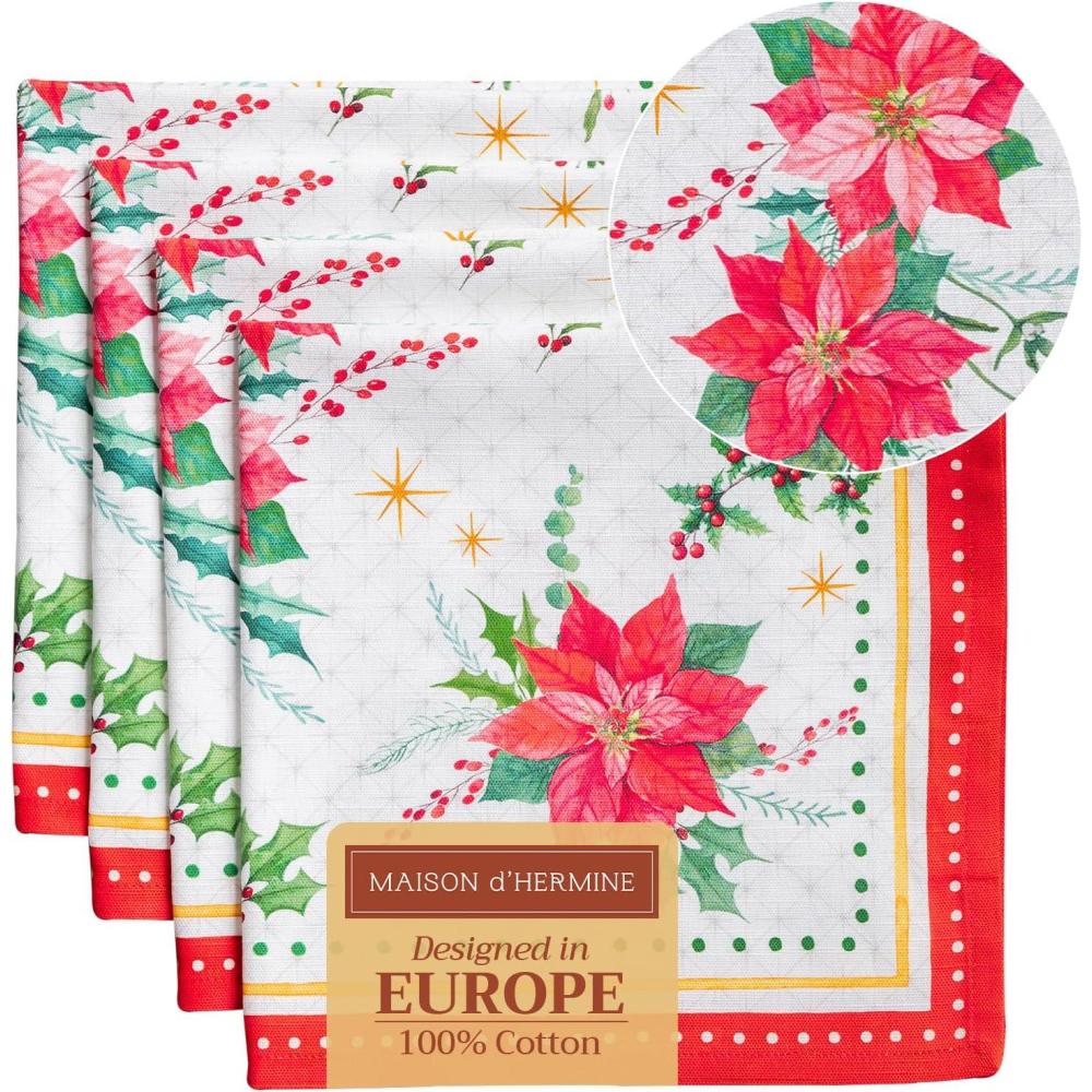 imageMaison d Hermine Cloth Napkins Set of 4 100 Cotton for Thanksgiving Decorations Everyday Reusable Square Fall Napkins Cloth Washable Dinner Party Wedding Pumpkin Garden  Dark Green 20quotx20quot13  Poinsettia Christmas
