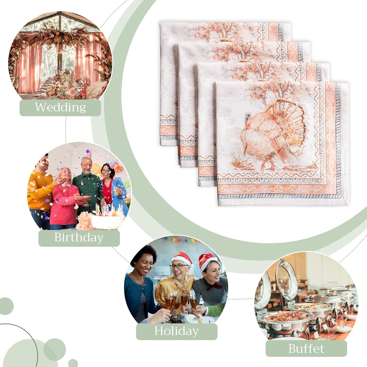 Package Includes: Set of 4 cloth napkins, each 20″x20″. Soft and elegant, these square napkins add charm to any table setting—perfect for Thanksgiving decor, Christmas, Halloween, or everyday use. Designed in Europe, made in India