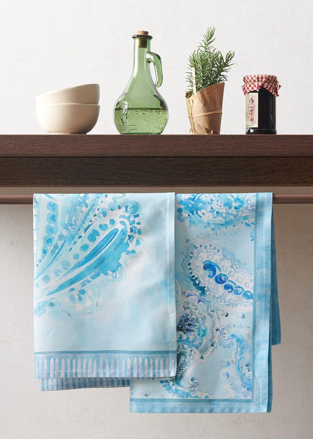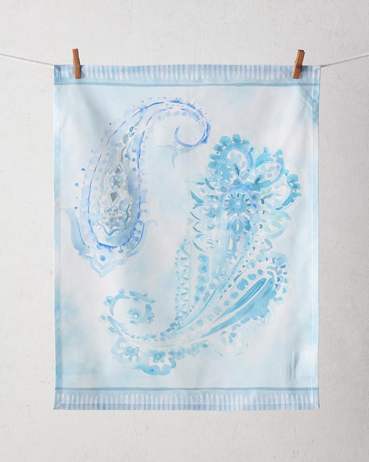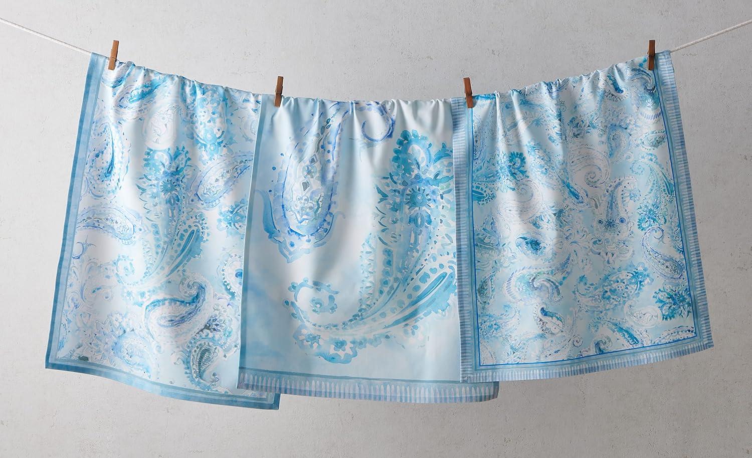 Maison d' Hermine Dishcloths 100% Combed Cotton Premium (20" x 27.50") Easter Multi-Purpose, Kitchen Towel for Kitchen, Holiday, Dinner, Wedding & Dining, Peacock Utopia - Sandy Beach (Set of 3)(Paisley Blues)