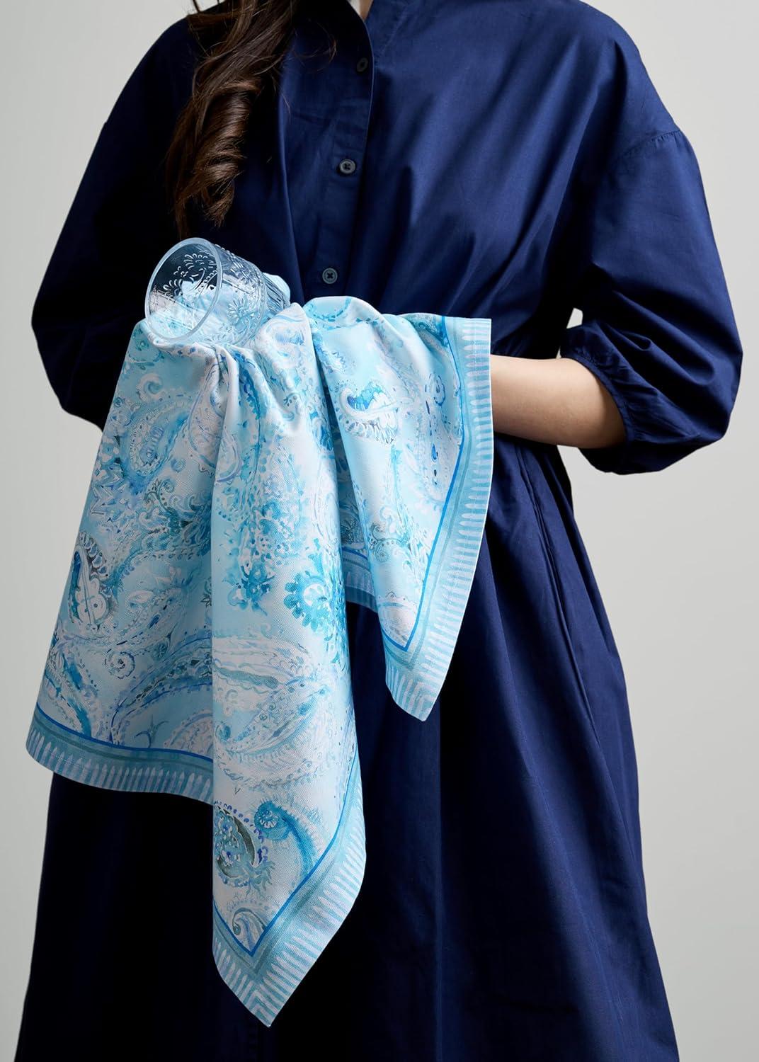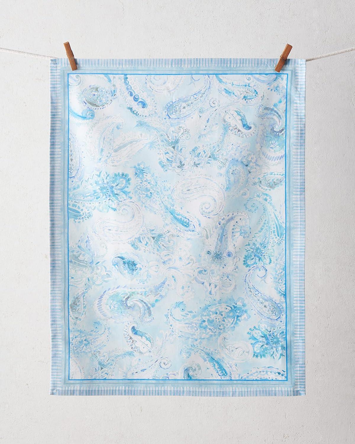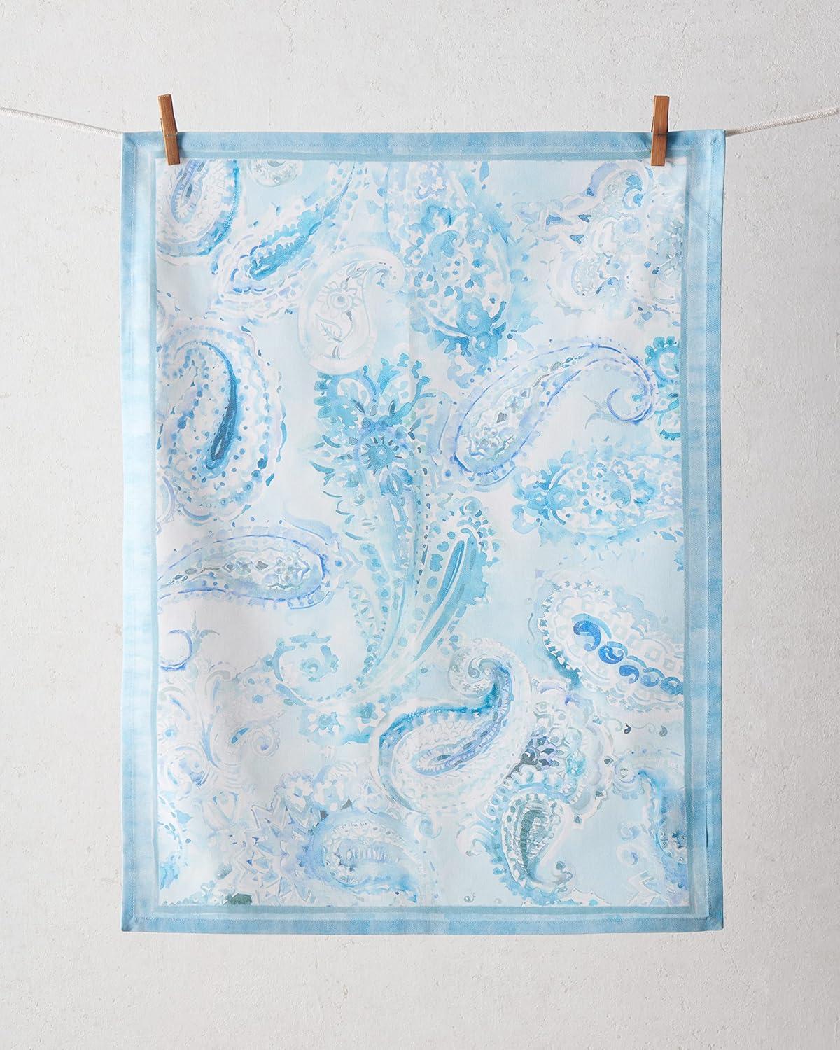 Maison d' Hermine Dishcloths 100% Combed Cotton Premium (20" x 27.50") Easter Multi-Purpose, Kitchen Towel for Kitchen, Holiday, Dinner, Wedding & Dining, Peacock Utopia - Sandy Beach (Set of 3)(Paisley Blues)
