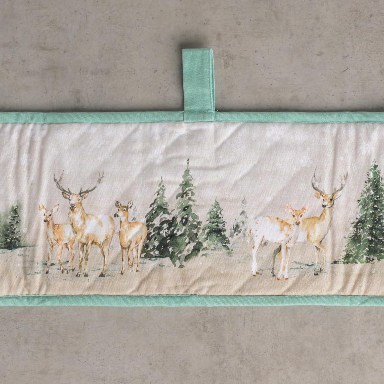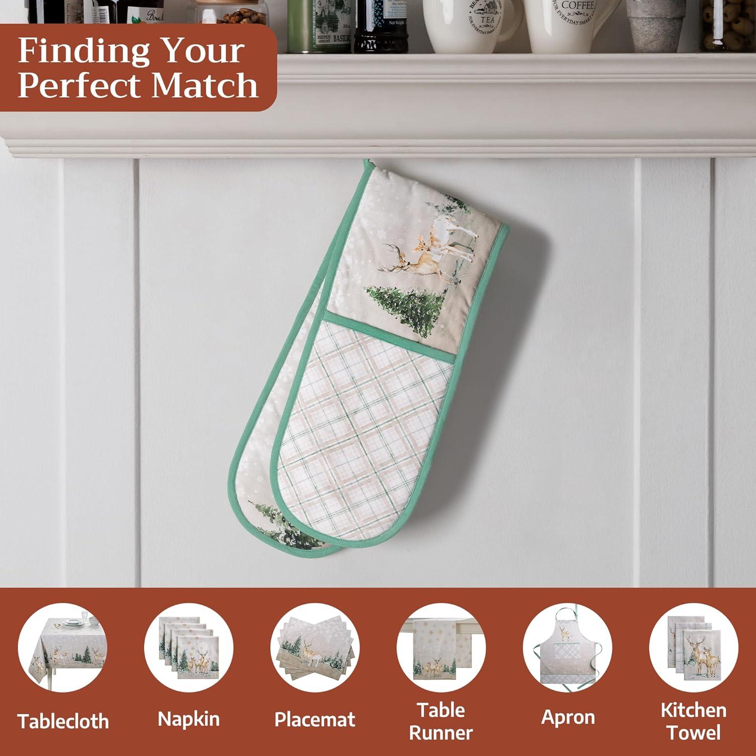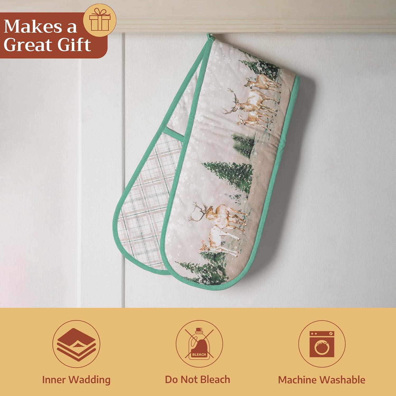 Maison d’ Hermine Double Oven Mitt (7″ x 35″) 100% Cotton Heat Resistant BBQ Cooking Gloves with Loop for Thanksgiving Christmas Decorations Baking Cooking Handling Hot Pan (Deer in The Woods)