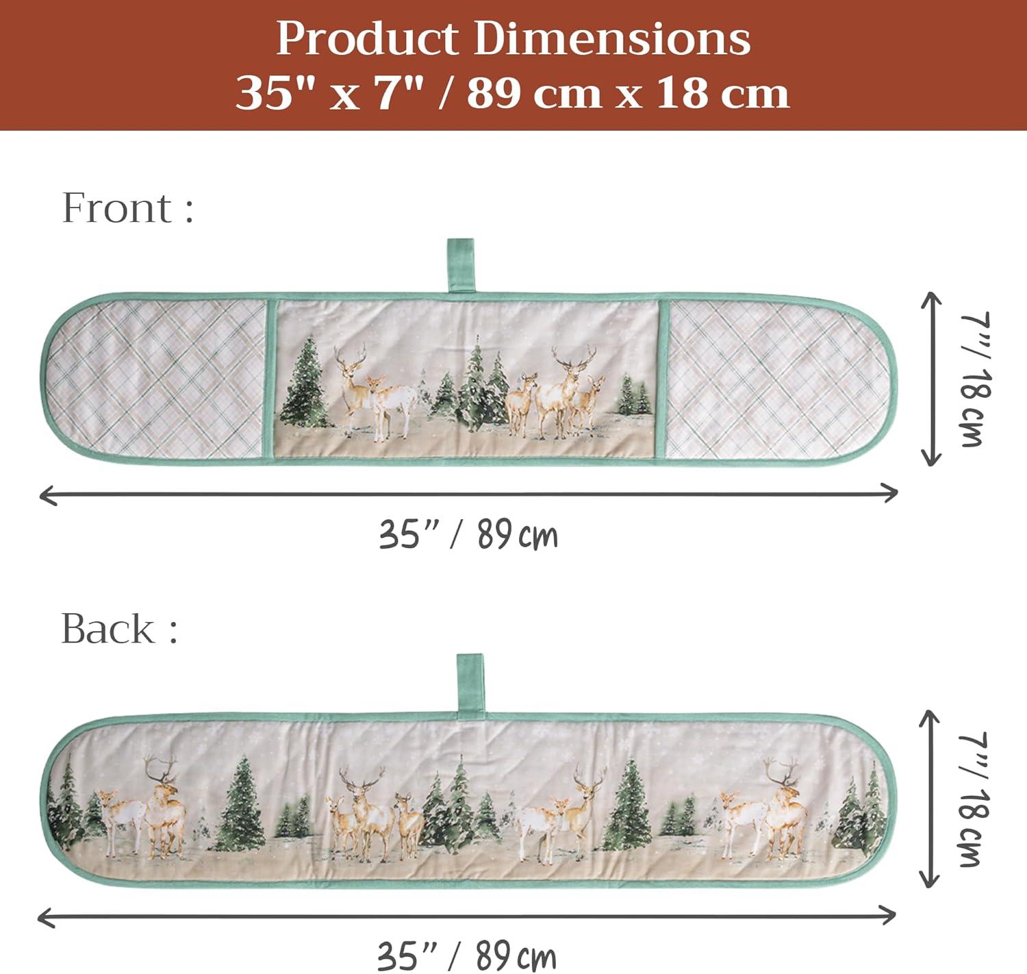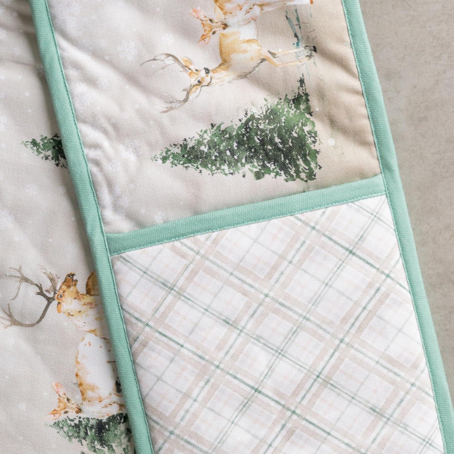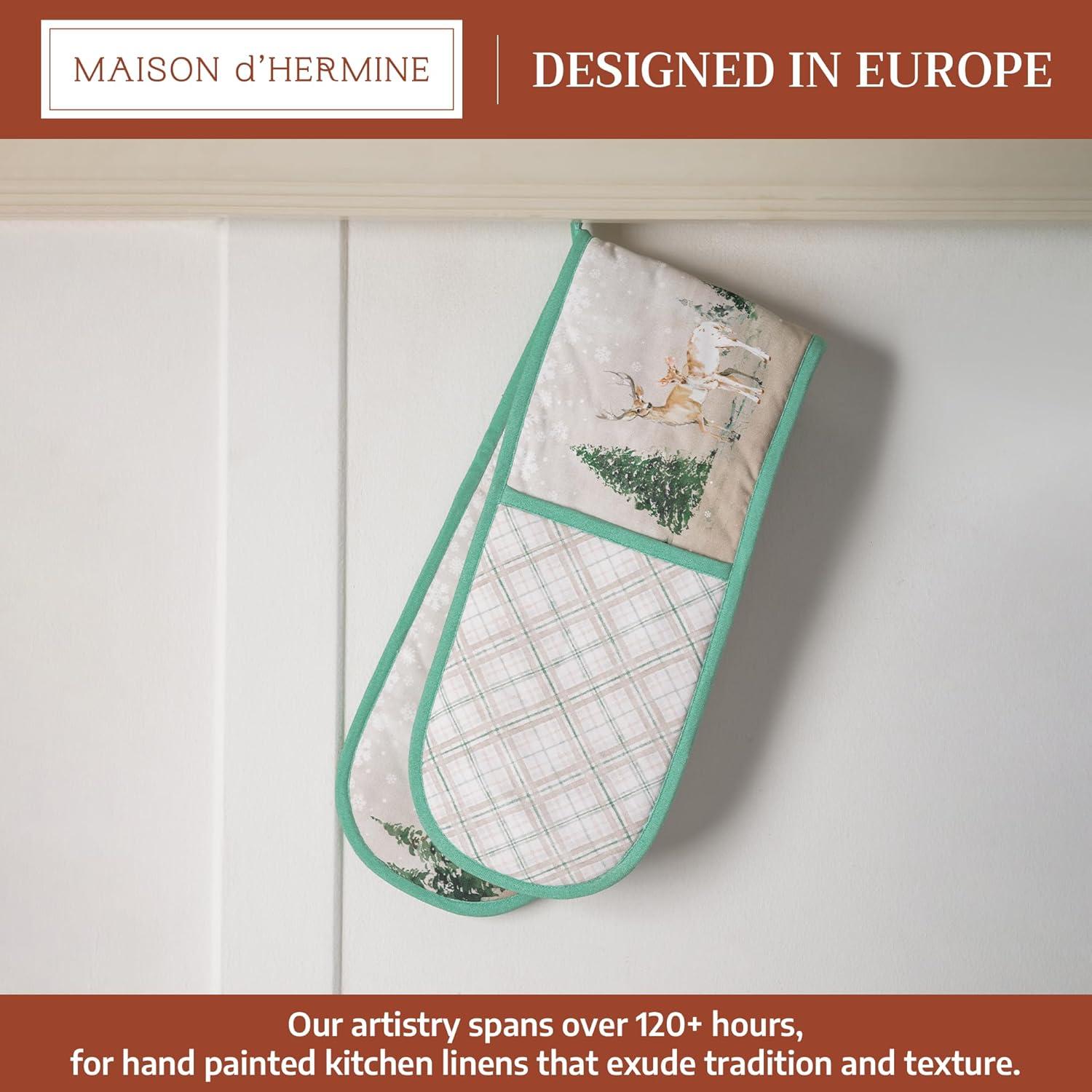 Maison d’ Hermine Double Oven Mitt (7″ x 35″) 100% Cotton Heat Resistant BBQ Cooking Gloves with Loop for Thanksgiving Christmas Decorations Baking Cooking Handling Hot Pan (Deer in The Woods)