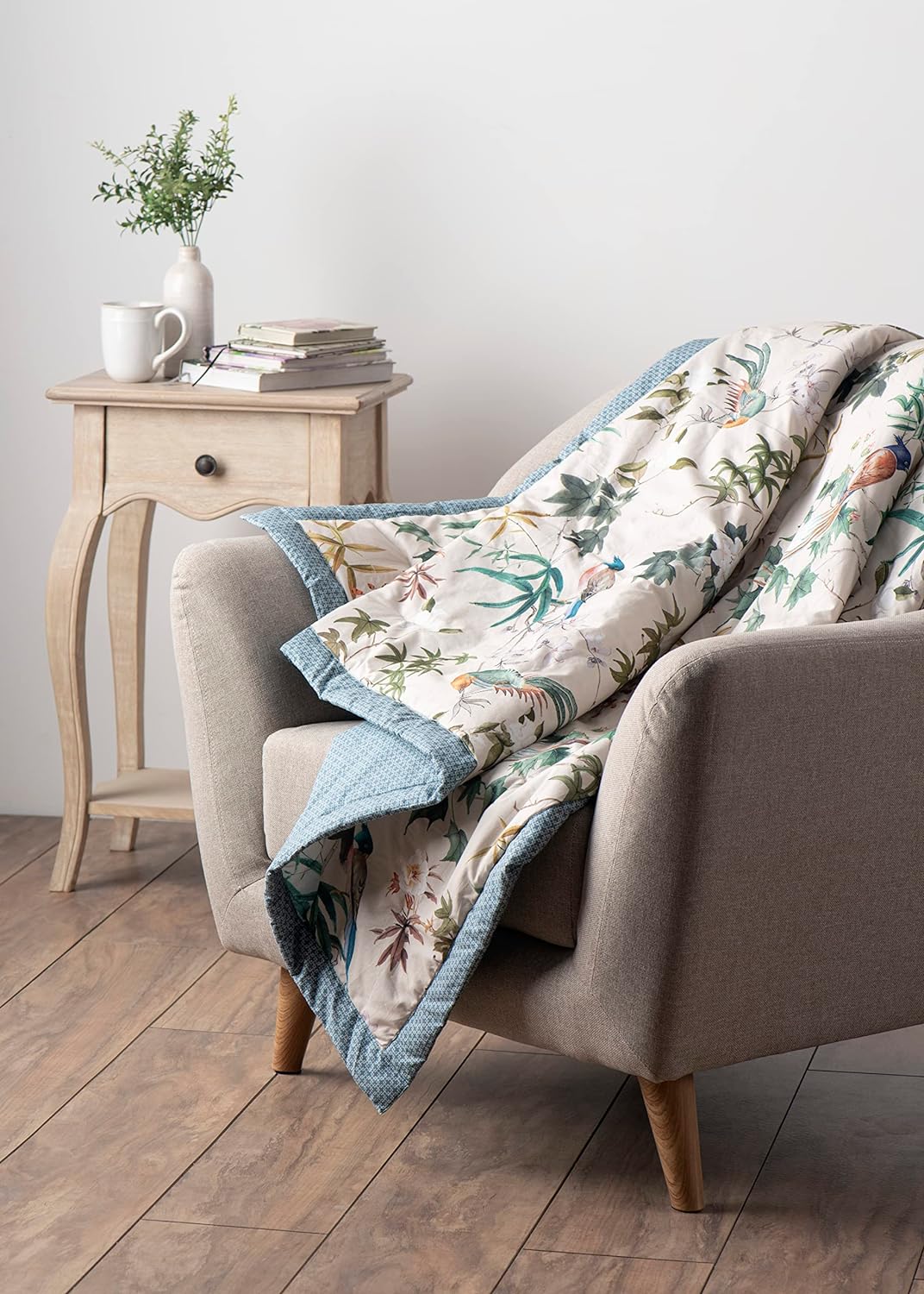 PACKAGE INCLUDES: 1 Throw Blanket sized 50″x60″. Outer fabric is 100% cotton and inner fabric is 100% Polyester. Our products are Made in India and Designed in France.