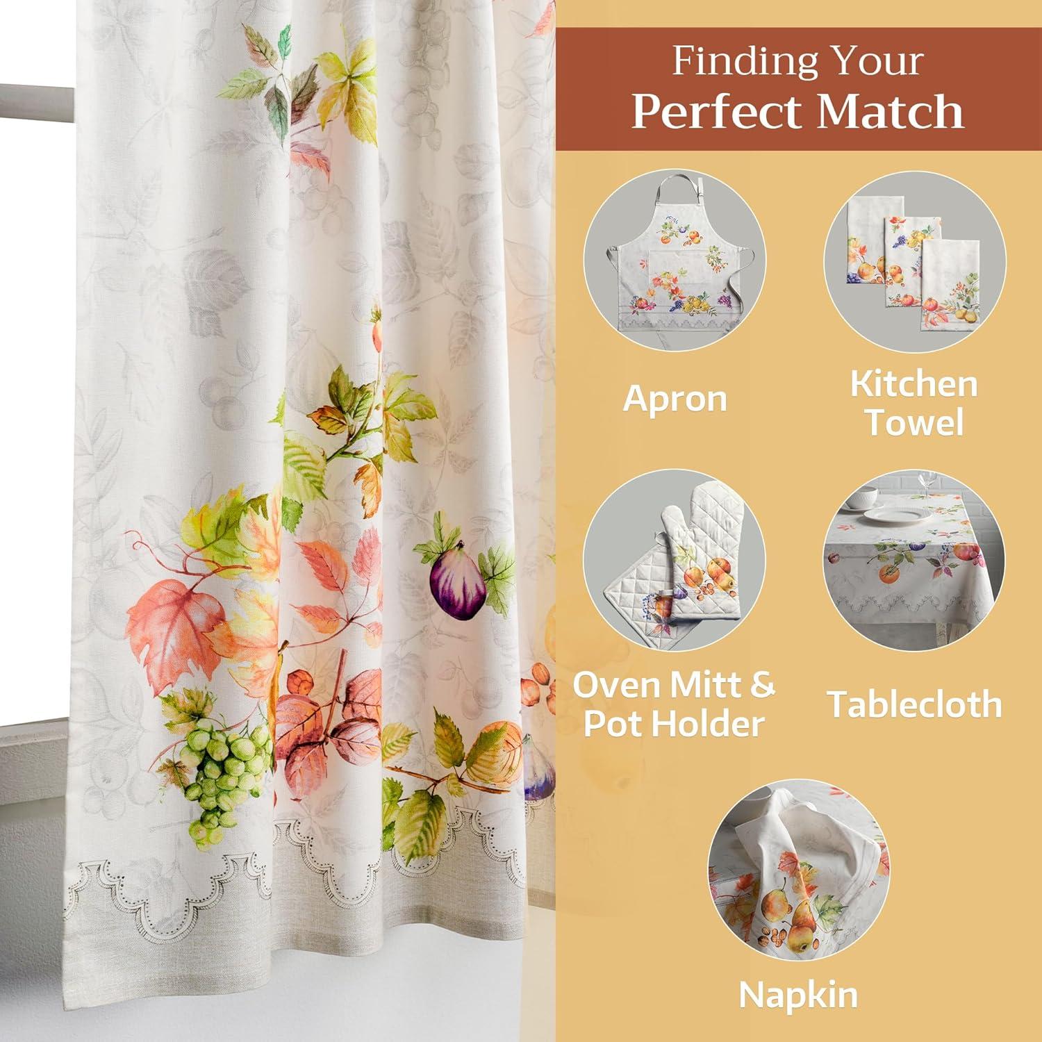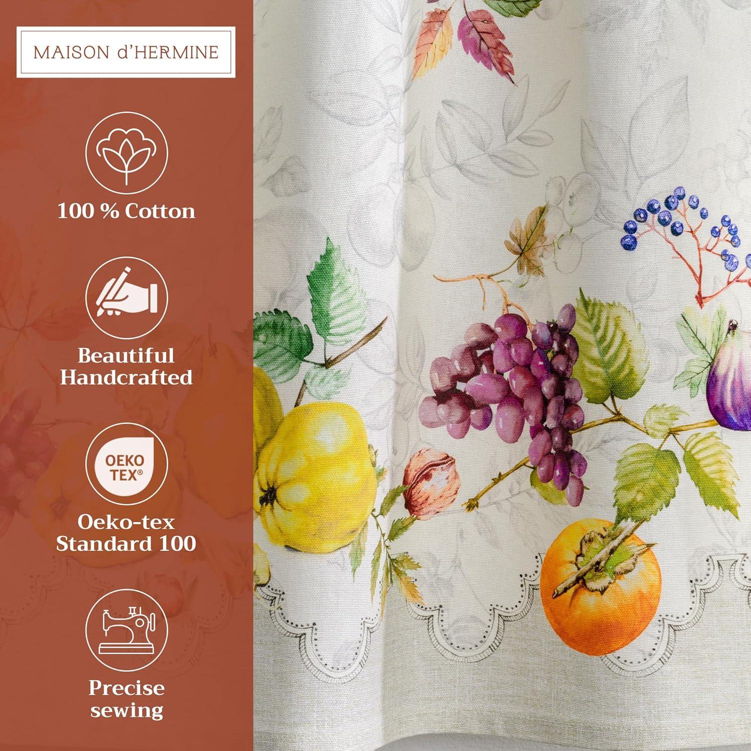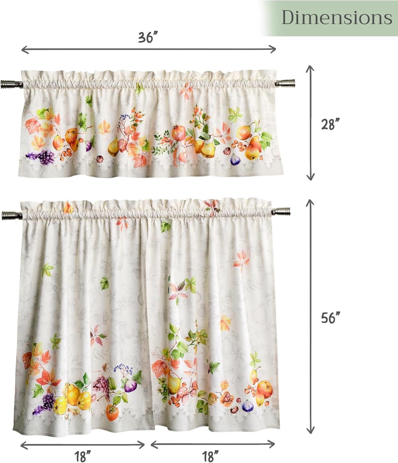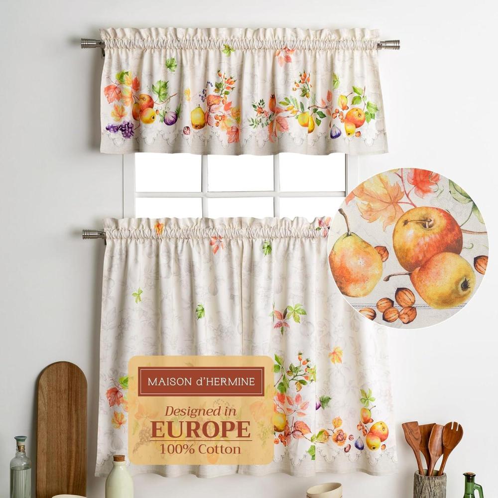Maison d’ Hermine Kitchen Curtains Sets for Windows 100% Cotton Set of Kitchen Curtains Valances for Home [2 Tiers (28″X36″) and 1 Valance (56″X18″)] Farmhouse, Cafe (Dalida)(09 – Fruit D’hiver)