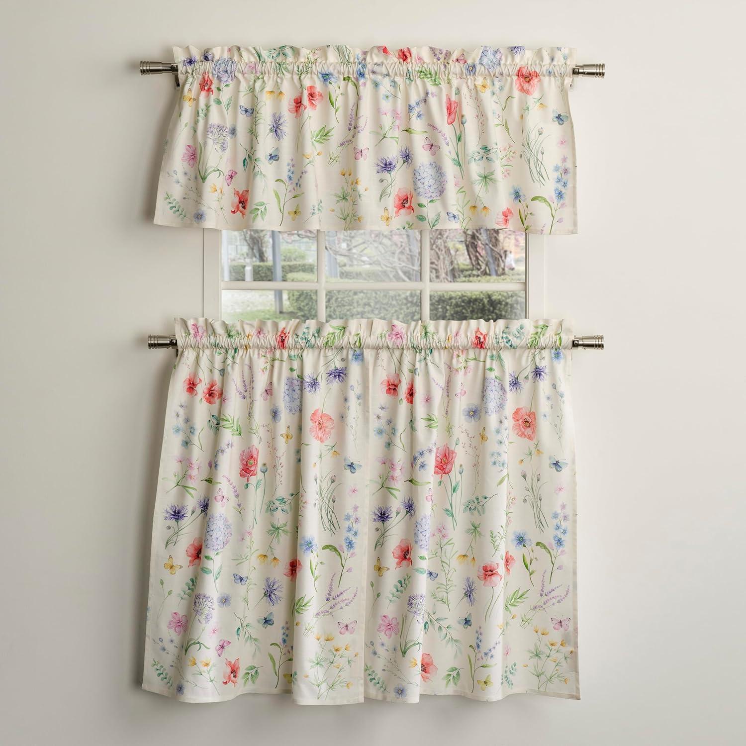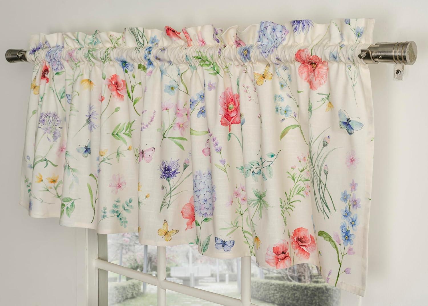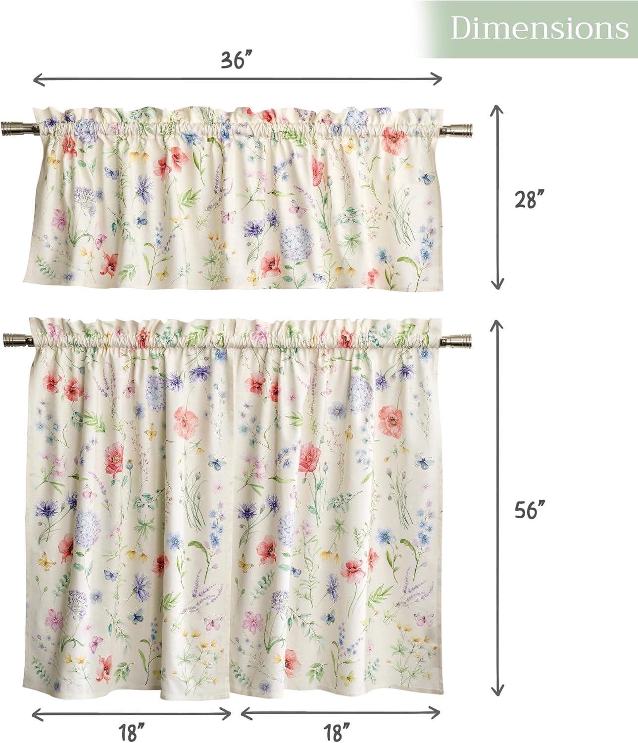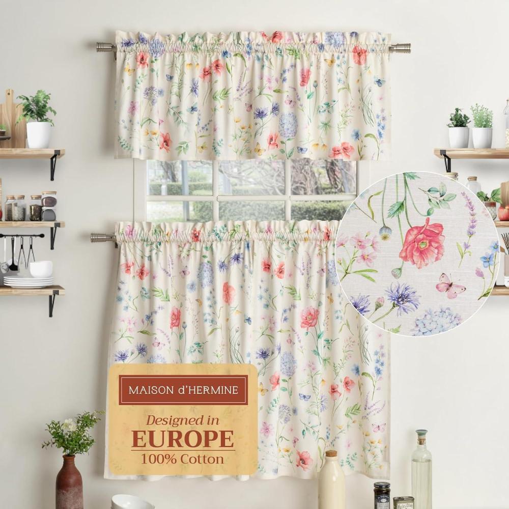 Maison d’ Hermine Kitchen Curtains Sets for Windows 100% Cotton Set of Kitchen Curtains Valances for Home [2 Tiers (28″X36″) and 1 Valance (56″X18″)] Farmhouse, Cafe (Dalida)(17 – Just Floral)
