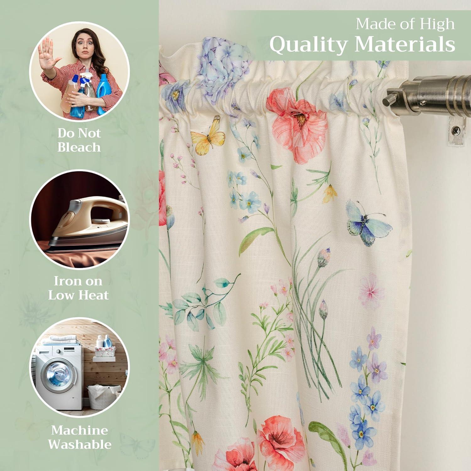 Simple care instructions: These cotton tier and valance curtains are easy to maintain—machine wash warm with like colors, do not bleach, tumble dry low, and warm iron if needed. Durable and colorfast, they remain fresh and beautiful through regular use