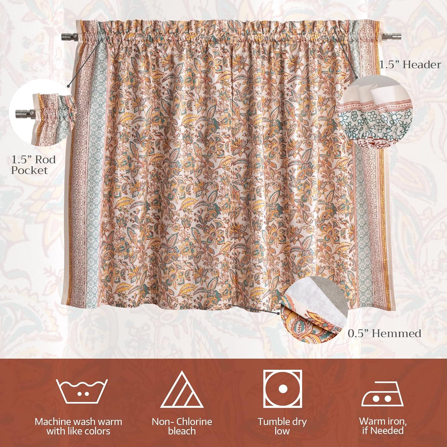 Simple care instructions: These cotton tier and valance curtains are easy to maintain—machine wash warm with like colors, do not bleach, tumble dry low, and warm iron if needed. Durable and colorfast, they remain fresh and beautiful through regular use
