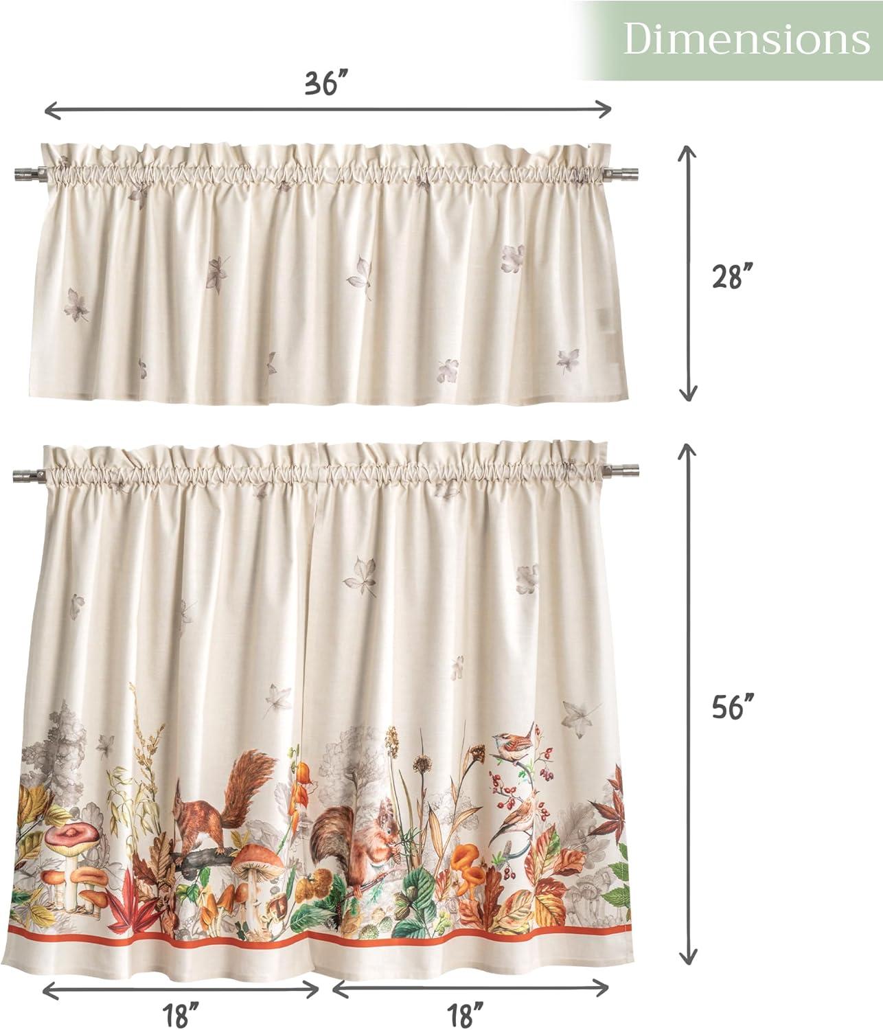 Maison d’ Hermine Kitchen Curtains Sets for Windows 100% Cotton Set of Kitchen Curtains Valances for Home [2 Tiers (28″X36″) and 1 Valance (56″X18″)] Farmhouse, Cafe (Dalida)(27 – Recolte)