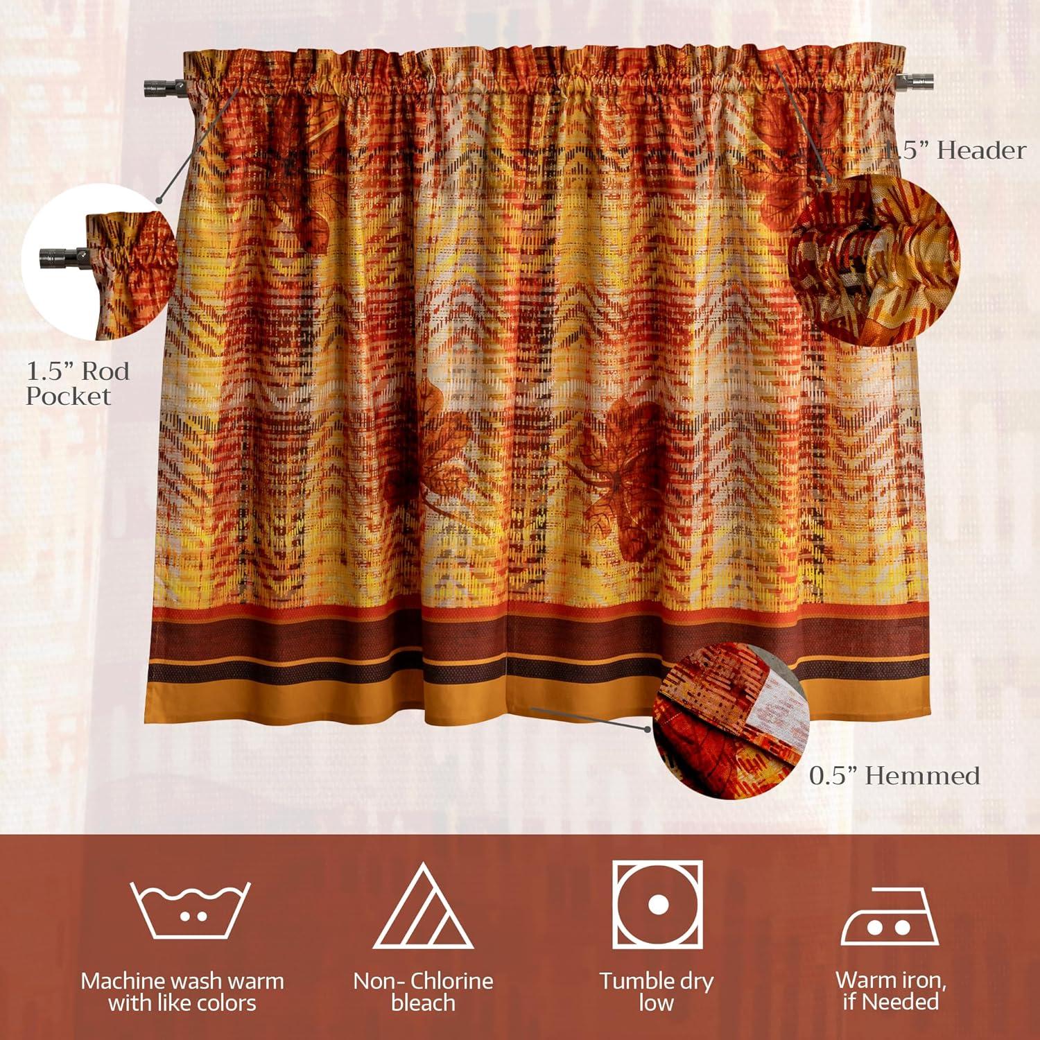 Simple care instructions: These cotton tier and valance curtains are easy to maintain—machine wash warm with like colors, do not bleach, tumble dry low, and warm iron if needed. Durable and colorfast, they remain fresh and beautiful through regular use