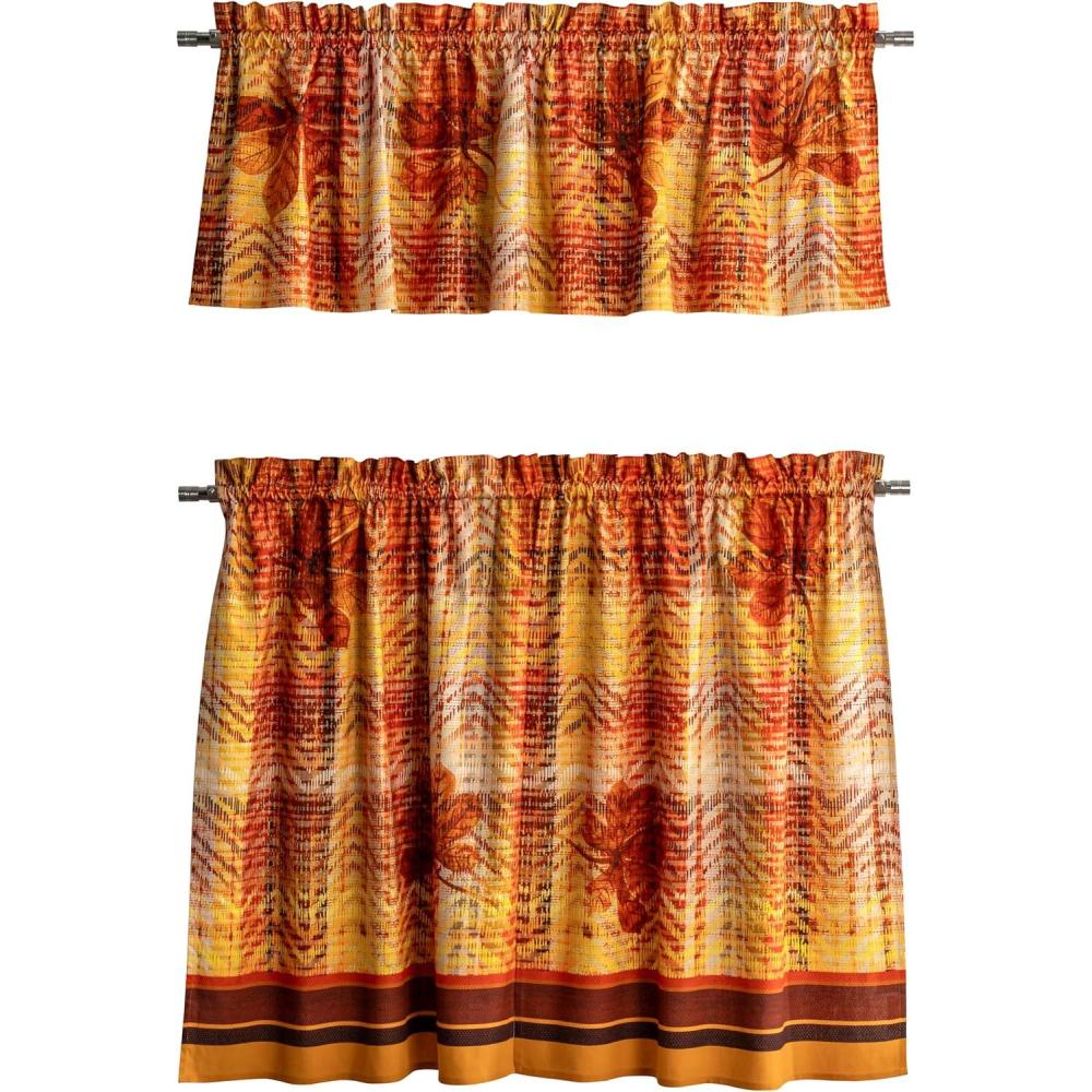 Maison d’ Hermine Kitchen Curtains Sets for Windows 100% Cotton Set of Kitchen Curtains Valances for Home [2 Tiers (28″X36″) and 1 Valance (56″X18″)] Farmhouse, Cafe (Dalida)(27 – Recolte)