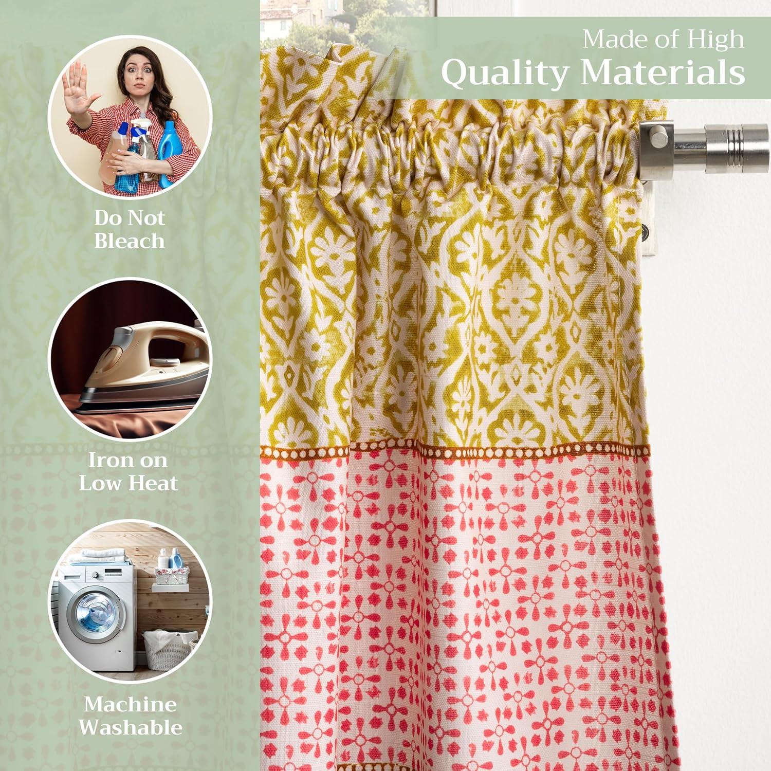 Design & quality: Made from 100% cotton, the curtains feature high-quality construction with neatly mitered corners and carefully finished seams. The premium fabric and expert stitching ensure long-lasting elegance for your kitchen or dining area