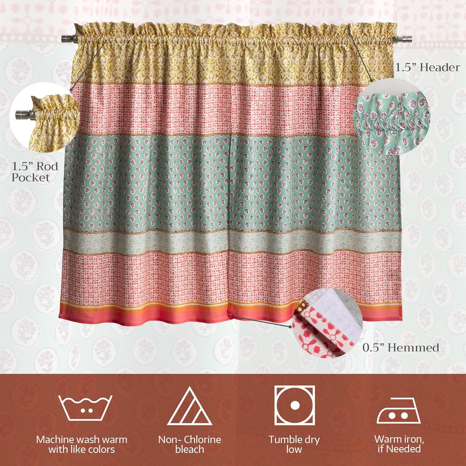 Simple care instructions: These cotton tier and valance curtains are easy to maintain—machine wash warm with like colors, do not bleach, tumble dry low, and warm iron if needed. Durable and colorfast, they remain fresh and beautiful through regular use