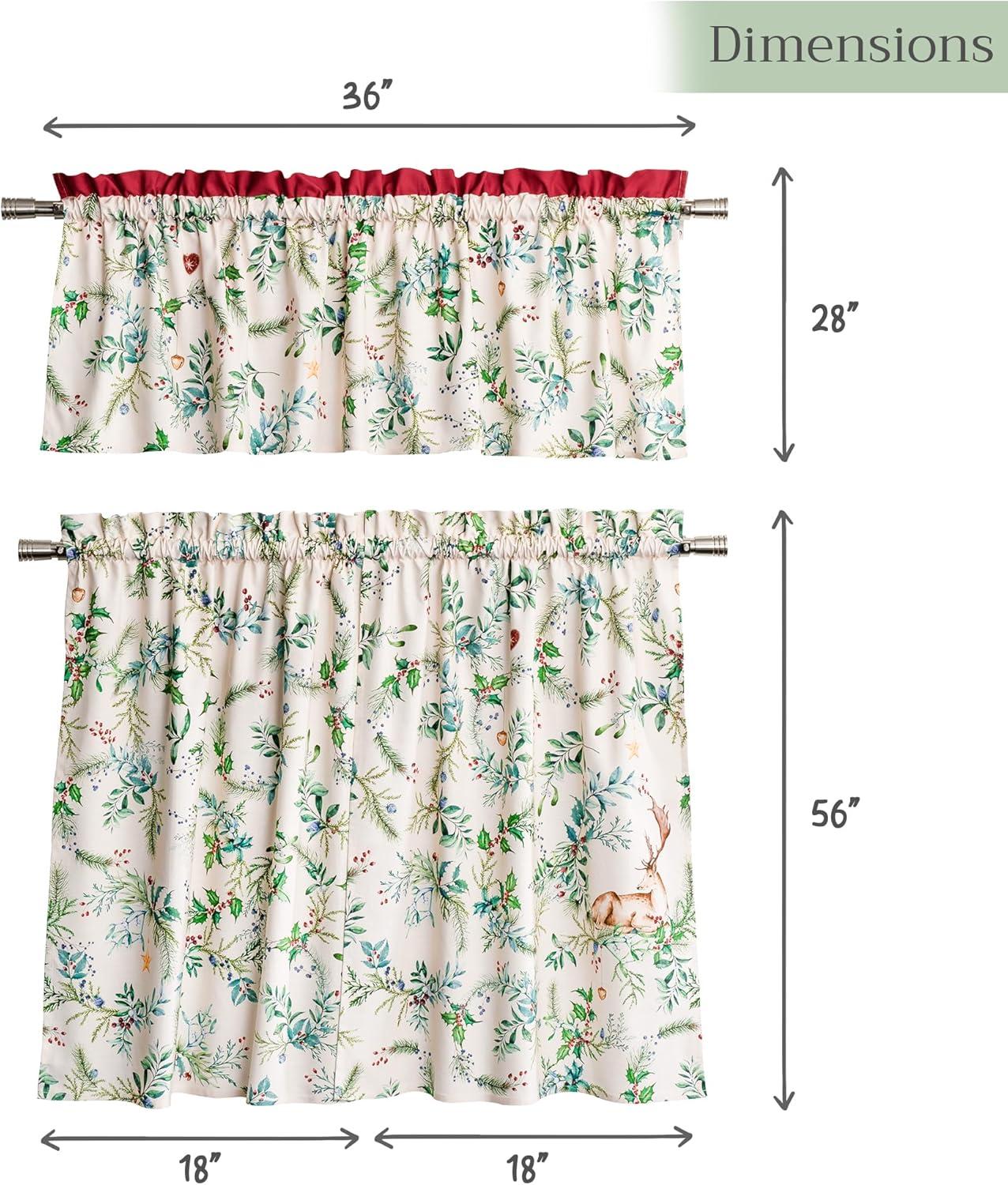 Maison d’ Hermine Kitchen Curtains Sets for Windows 100% Cotton Set of Kitchen Curtains Valances for Home [2 Tiers (28″X36″) and 1 Valance (56″X18″)] Farmhouse, Cafe (Rural Christmas)(19 – Amazonia)