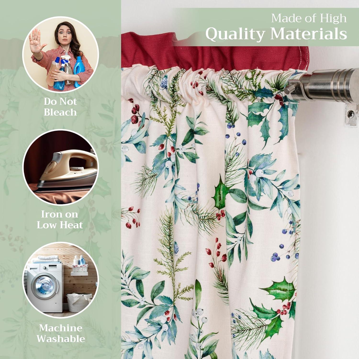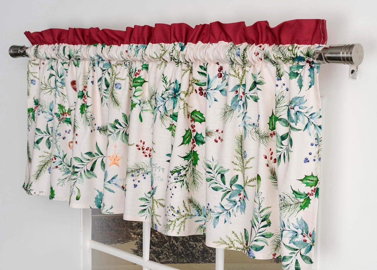 imageMaison d Hermine Kitchen Curtains Sets for Windows 100 Cotton Set of Kitchen Curtains Valances for Home 2 Tiers 28quotX36quot and 1 Valance 56quotX18quot Farmhouse Cafe Rural Christmas20  Holly Time