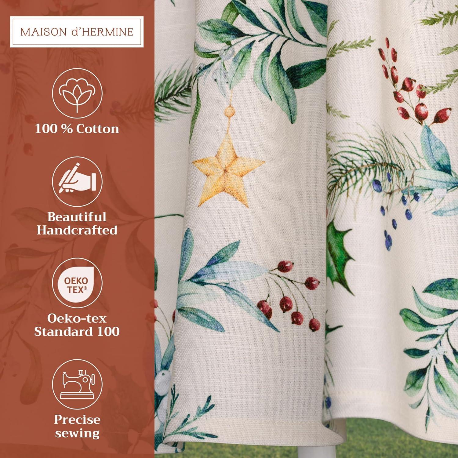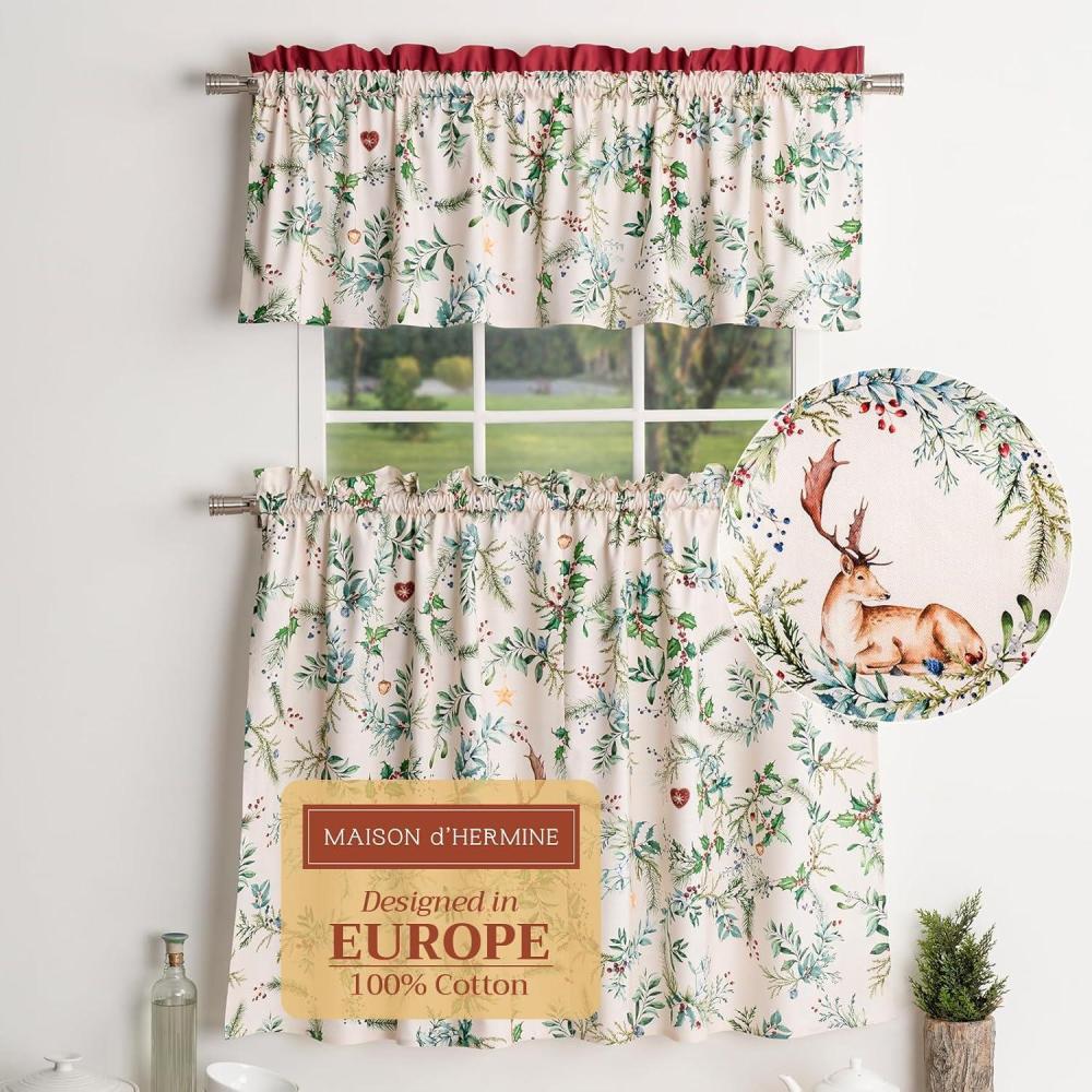Maison d’ Hermine Kitchen Curtains Sets for Windows 100% Cotton Set of Kitchen Curtains Valances for Home [2 Tiers (28″X36″) and 1 Valance (56″X18″)] Farmhouse, Cafe (Rural Christmas)(20 – Holly Time)