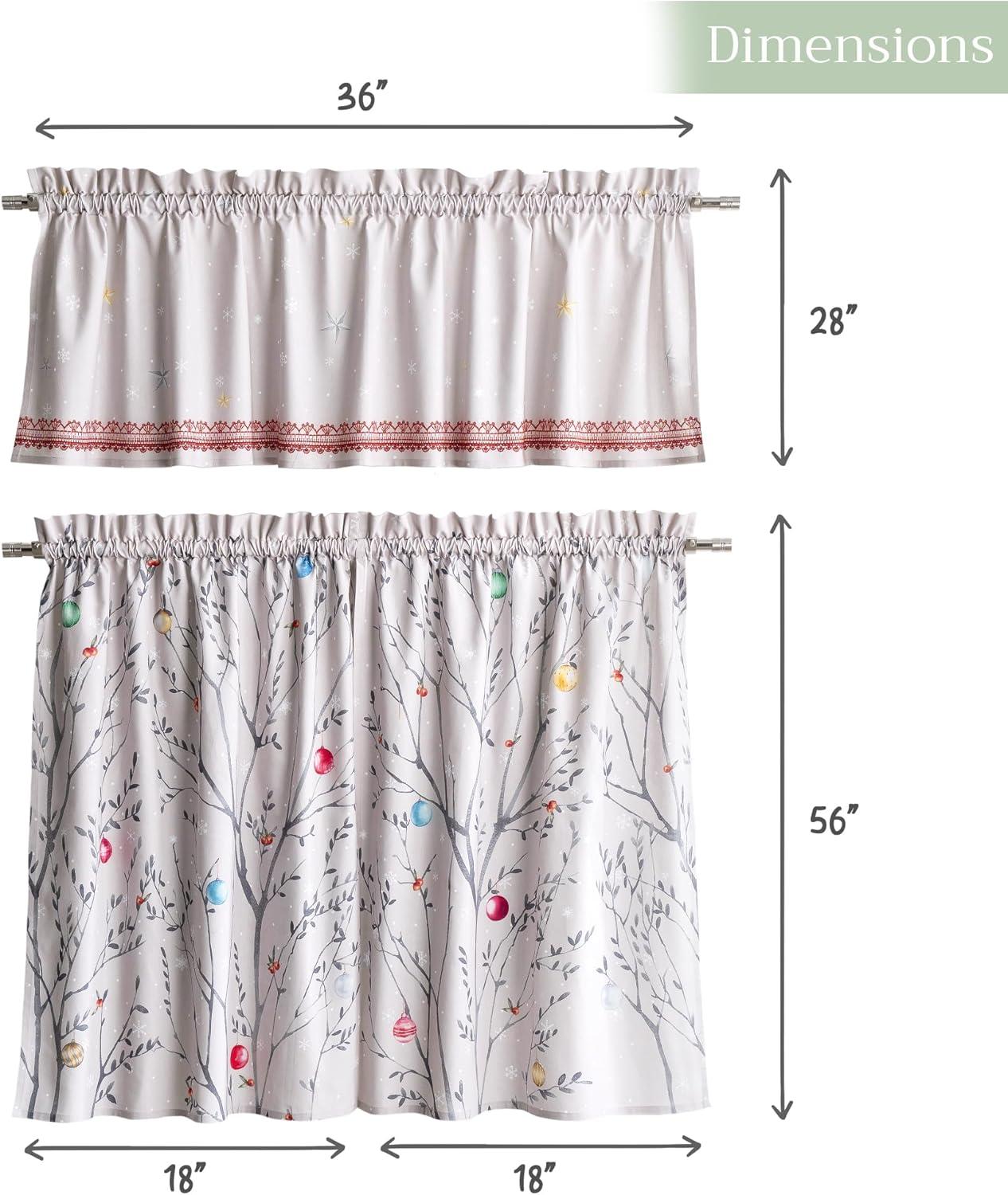 Maison d’ Hermine Kitchen Curtains Sets for Windows 100% Cotton Set of Kitchen Curtains Valances for Home [2 Tiers (28″X36″) and 1 Valance (56″X18″)] Farmhouse, Cafe (Rural Christmas)(23 – Fairy Christmas)