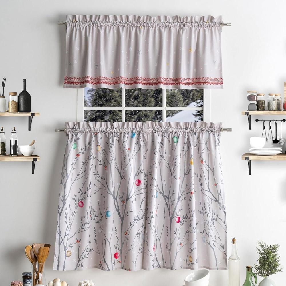 Maison d’ Hermine Kitchen Curtains Sets for Windows 100% Cotton Set of Kitchen Curtains Valances for Home [2 Tiers (28″X36″) and 1 Valance (56″X18″)] Farmhouse, Cafe (Rural Christmas)(22 – Rural Christmas)