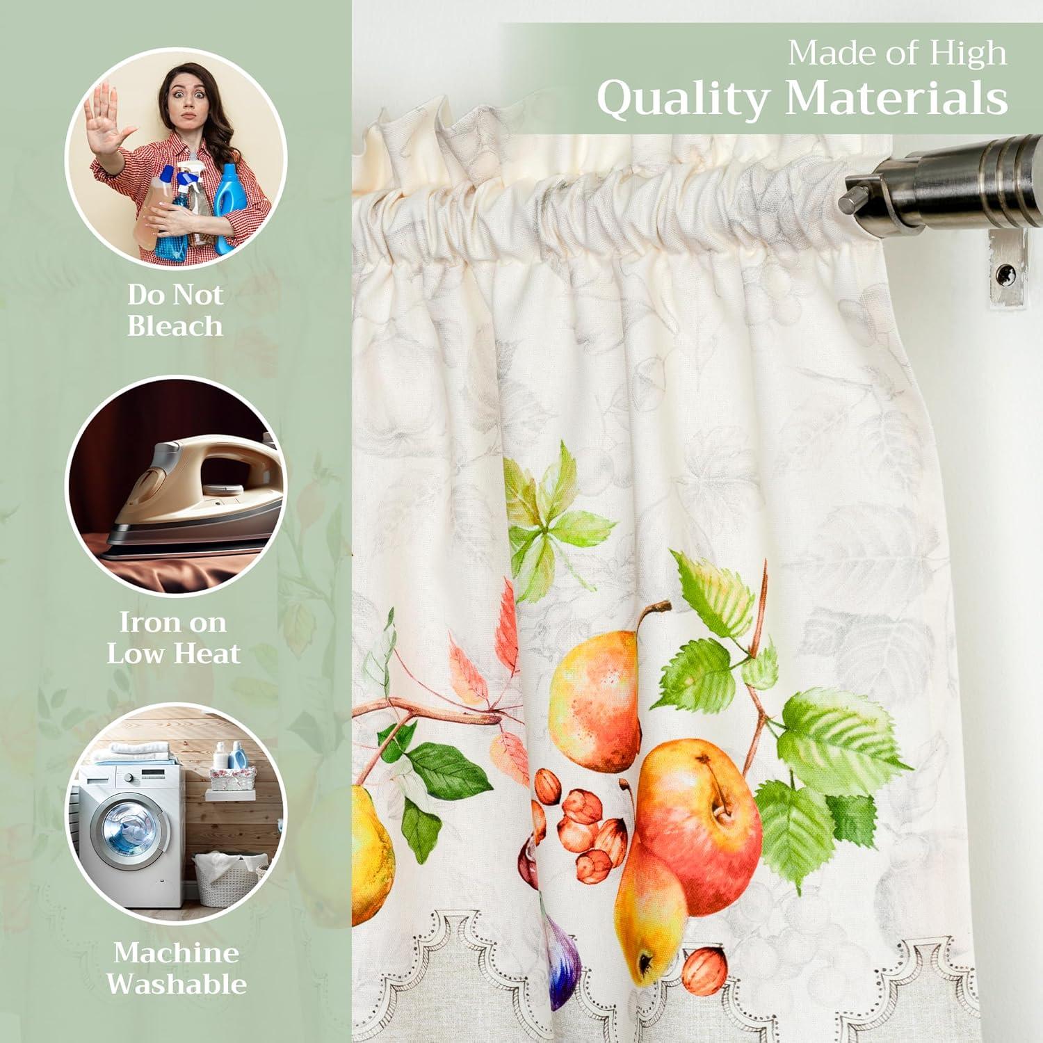 QUALITY: Crafted from 100% cotton, a lot of detailing has gone into the making of this elegant Kitchen Curtain Set. We use a variety of sewing techniques to make sure that the seams stay tacked and the corners are crisp and well mitered.