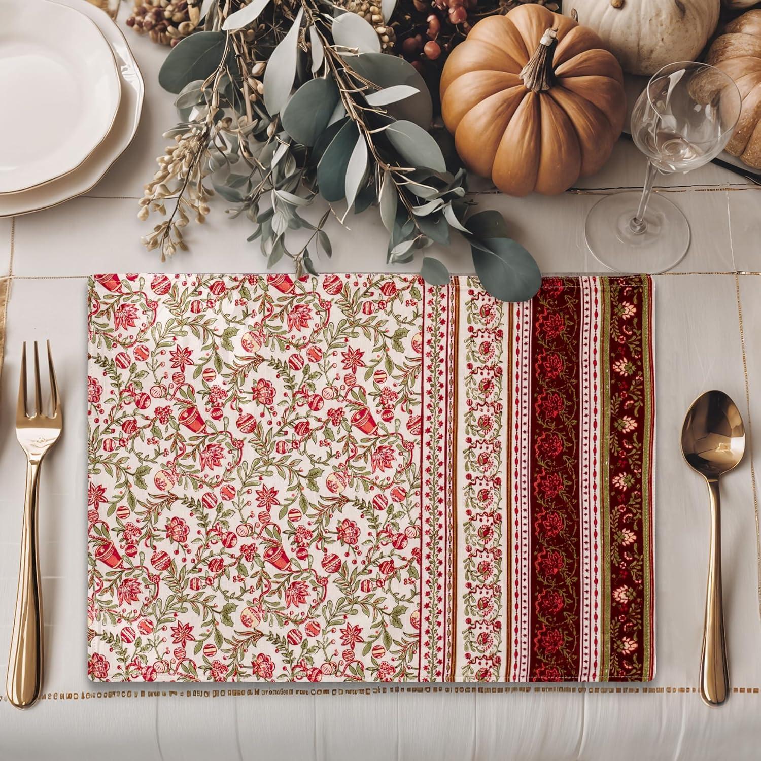 Enhance your home: Crafted from 100% cotton, these reusable placemats add the perfect touch to your dining table decor. Ideal for everyday meals, spring gatherings, weddings, or festive holiday dinners—use alone or paired with matching linens