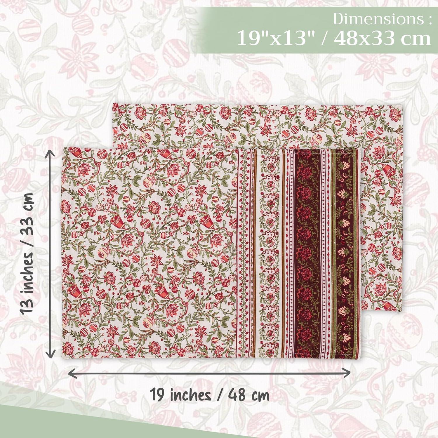 Maison d' Hermine Placemats Set of 4 100% Cotton Washable Cloth Place Mats, Reusable Table Mats for Kitchen Dining Decoration, Party, Wedding, Restaurant (Reveillon Au Jardin, 13" x 19")(12 - Reveillon Au Jardin)