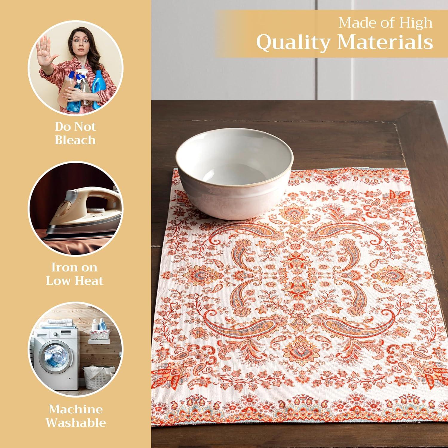 Enhance your home: Crafted from 100% cotton, these reusable placemats add the perfect touch to your dining table decor. Ideal for everyday meals, spring gatherings, weddings, or festive holiday dinners—use alone or paired with matching linens