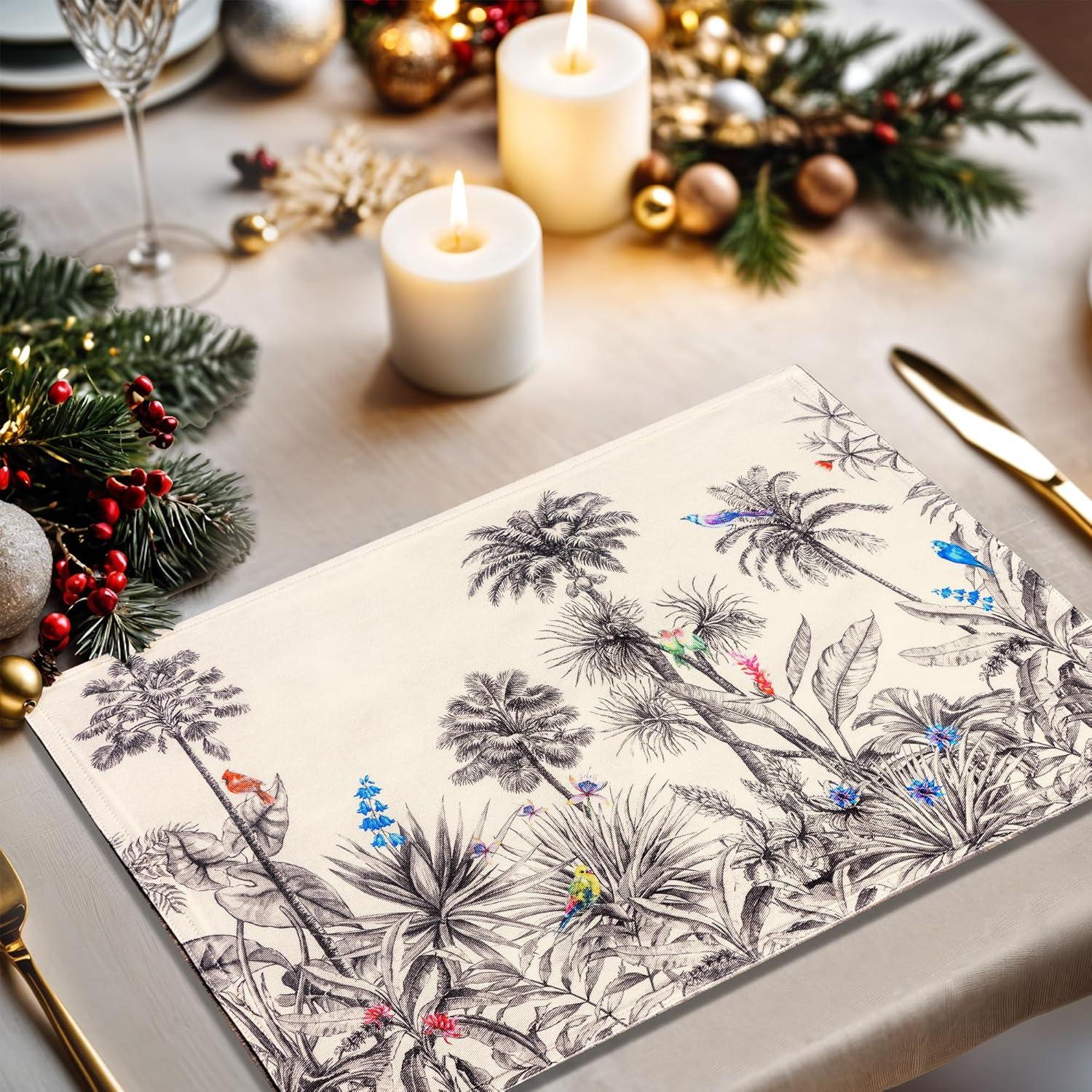 Maison d’ Hermine Placemats Set of 4 100% Cotton Washable Cloth Place Mats, Reusable Table Mats for Kitchen Dining Decoration, Party, Wedding, Restaurant (Reveillon Au Jardin, 13″ x 19″)(23 – Amazonia)