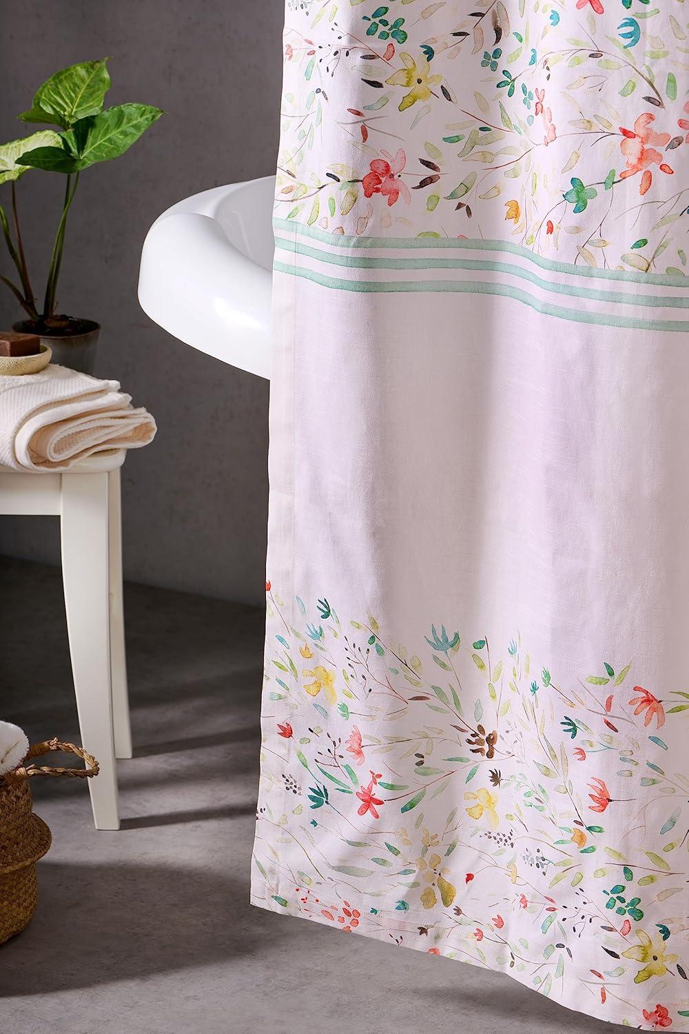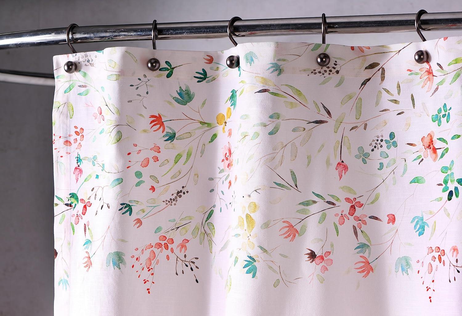 Maison d’ Hermine Shower Curtain 100% Cotton One Panel 70″x72″ Washable Fabric Mothers Day Shower Curtains for Bathroom, Easy Hanging with 12 Button Holes – Home, Hotels (Gignac)(02 – Botanical Fresh)