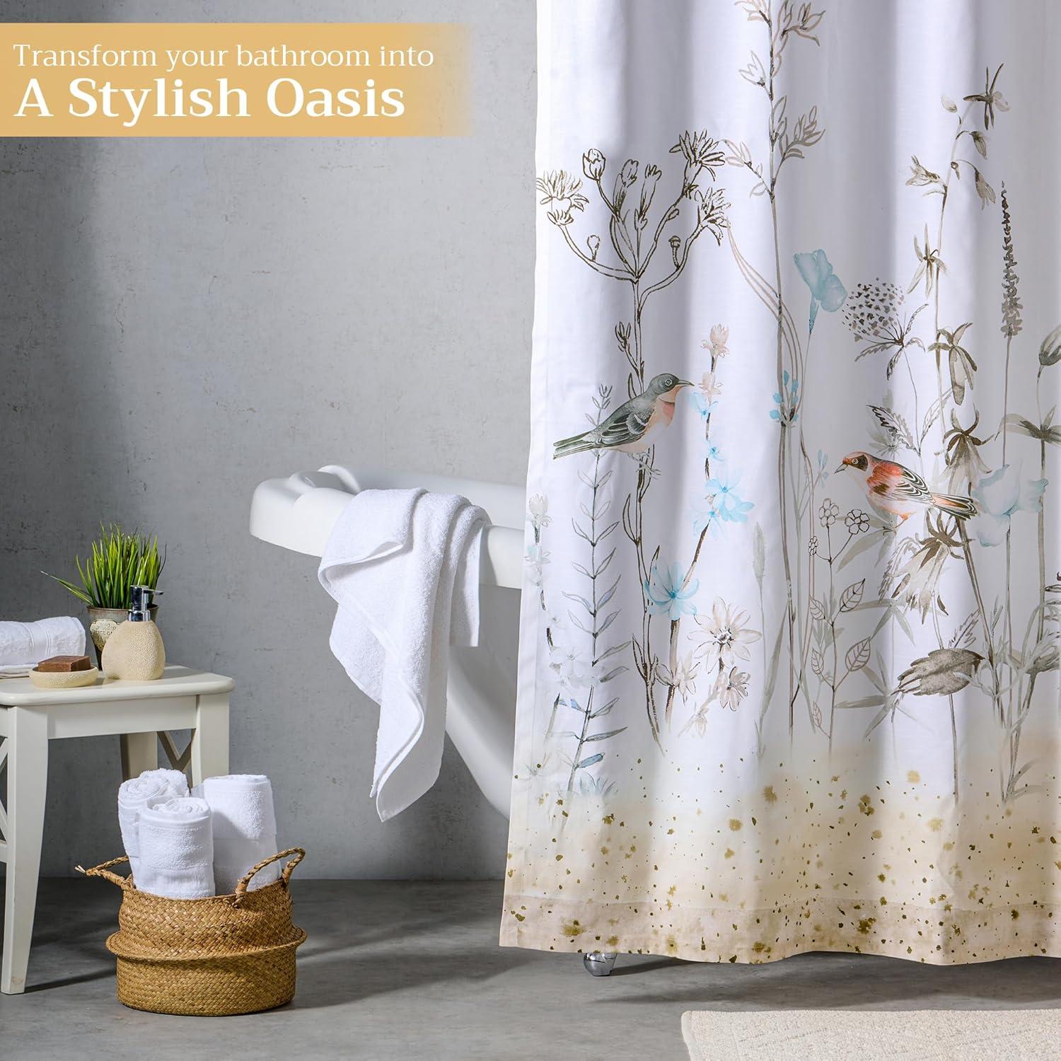 Maison d’ Hermine Shower Curtain 100% Cotton One Panel 70″x72″ Washable Fabric Mothers Day Shower Curtains for Bathroom, Easy Hanging with 12 Button Holes – Home, Hotels (Gignac)(07 – Meadow Florals)