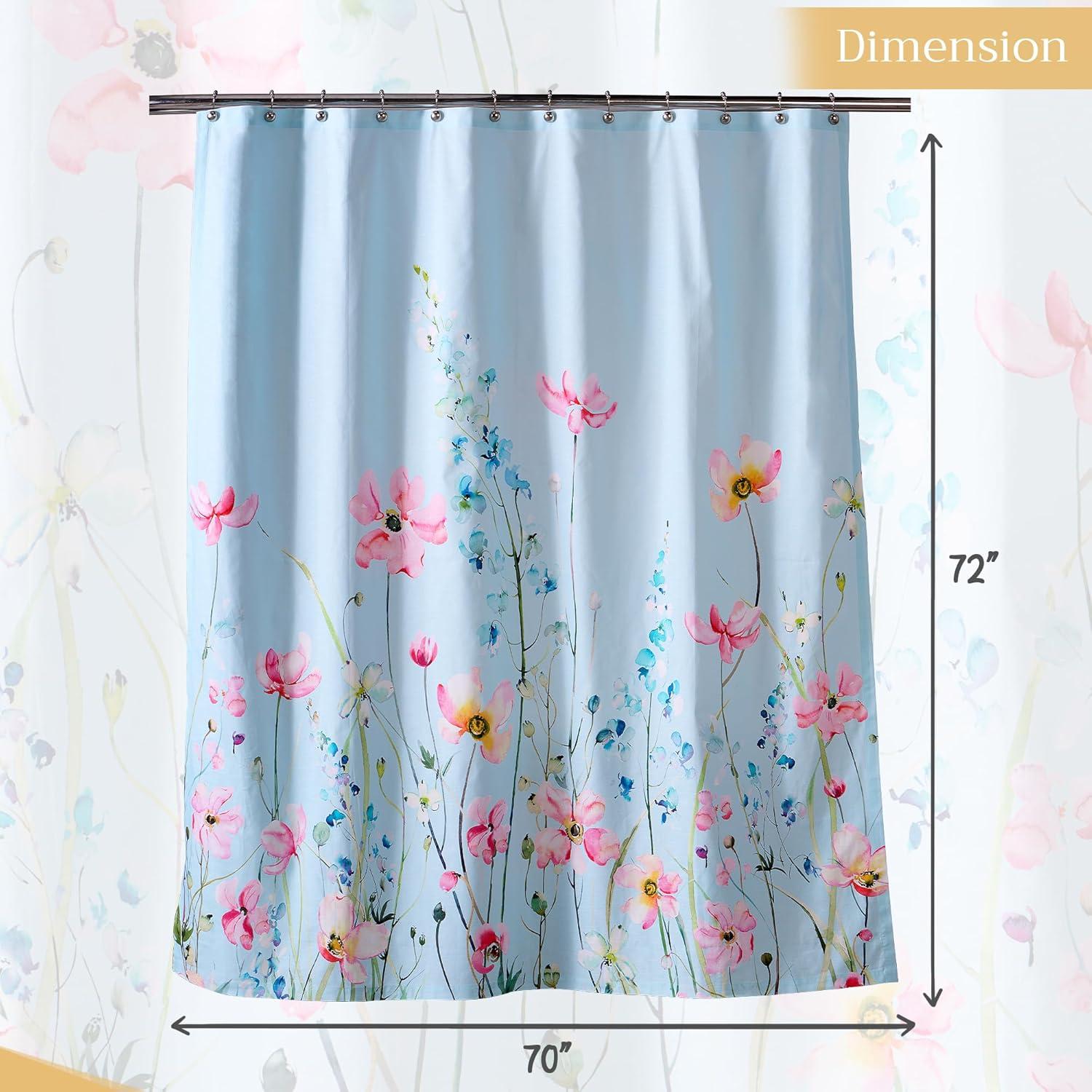 Maison d’ Hermine Shower Curtain 100% Cotton One Panel 70″x72″ Washable Fabric Mothers Day Shower Curtains for Bathroom, Easy Hanging with 12 Button Holes – Home, Hotels (Gignac)(15 – Delphinium)