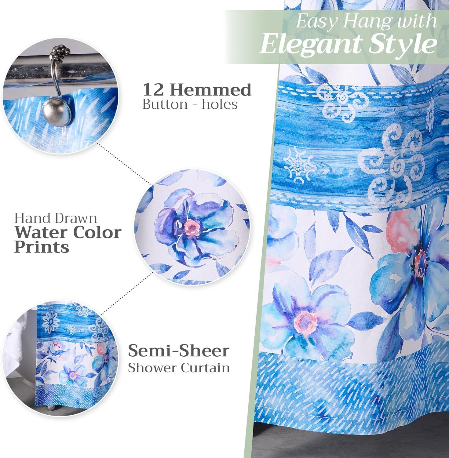 Timeless Artistic Design: Featuring hand-painted watercolor prints inspired by classic European patterns, this curtain brings an elegant, artistic flair that enhances the look of traditional, modern, or farmhouse-style bathrooms.
