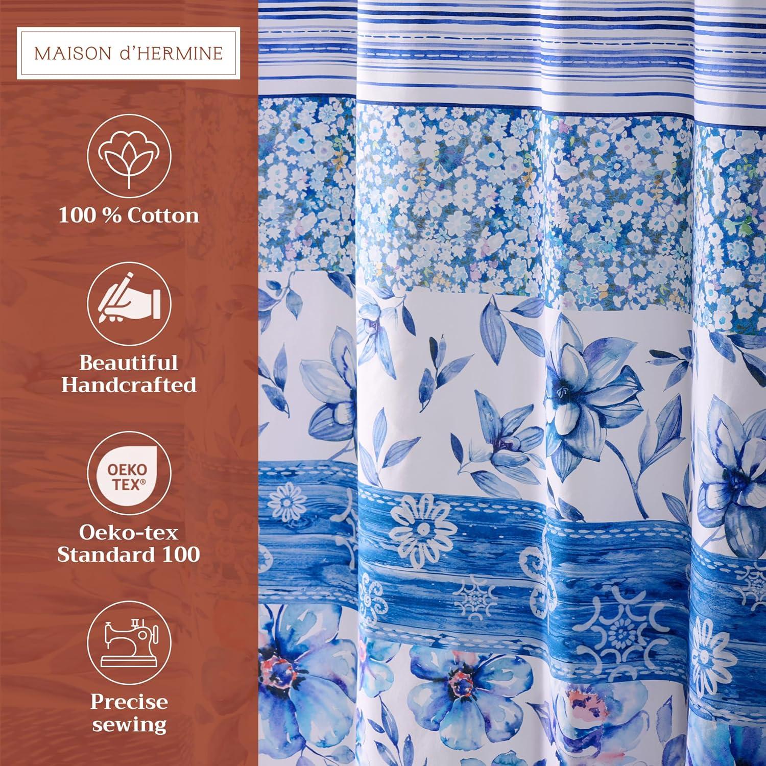 Maison d’ Hermine Shower Curtain 100% Cotton One Panel 70″x72″ Washable Fabric Shower Curtains for Bathroom, Easy Hanging with 12 Button Holes – Home, Farmhouse, Hotel, Spa (Luxury Loft – Peach)(24 – Summer Blues)