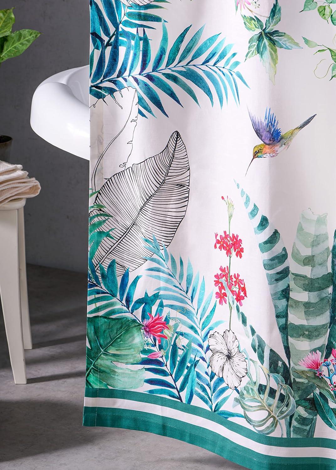 Maison d' Hermine Shower Curtain 100% Cotton One Panel 70"x72" Washable Fabric Shower Curtains for Bathroom, Easy Hanging with 12 Button Holes - Home, Farmhouse, Hotel, Spa (Luxury Loft – Peach)(05 - Tropiques)
