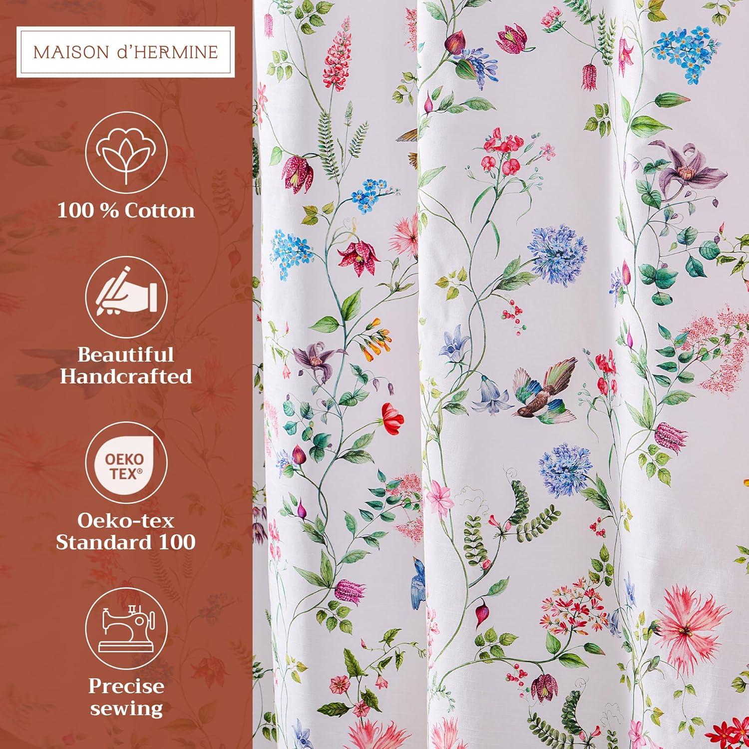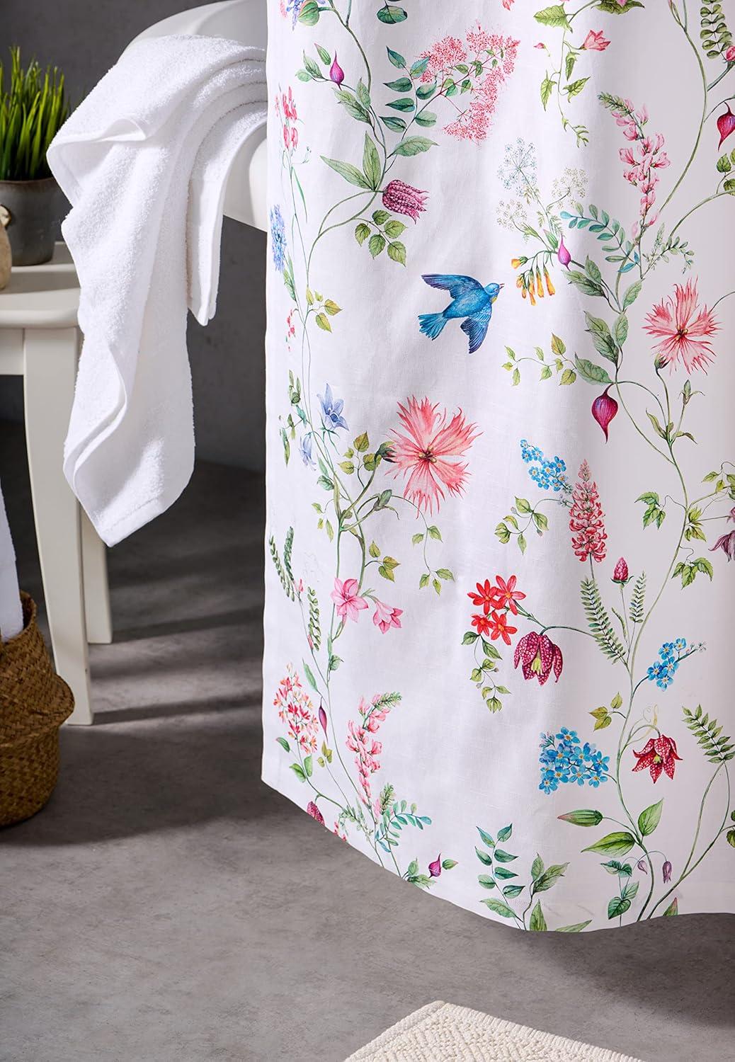 Maison d’ Hermine Shower Curtain 100% Cotton One Panel 70″x72″ Washable Fabric Shower Curtains for Bathroom, Easy Hanging with 12 Button Holes – Home, Farmhouse, Hotel, Spa (Luxury Loft – Peach)(07 – Meadow Florals)