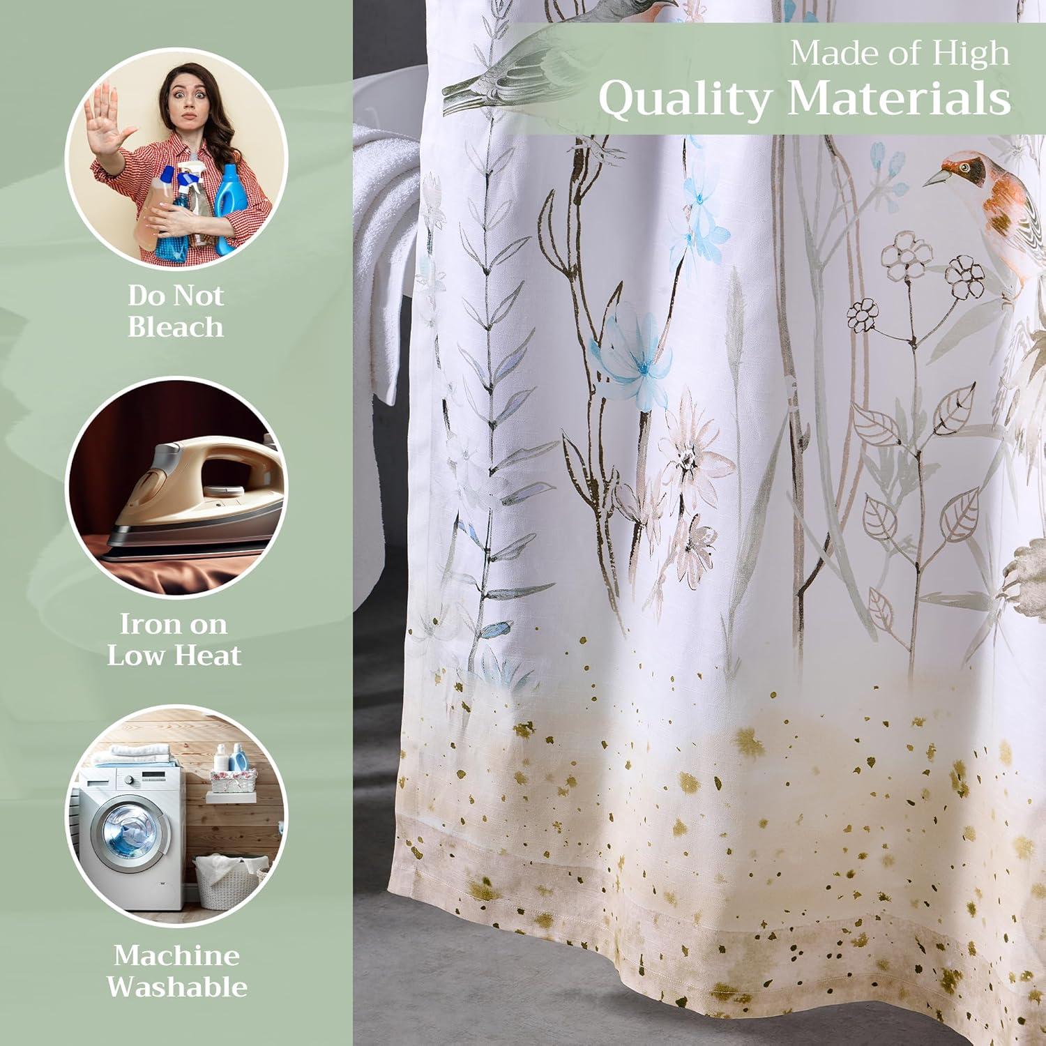 Durable Cotton Fabric: Crafted from 100% cotton, this shower curtain provides a soft yet sturdy texture with rich color retention and long-lasting durability—perfect for adding natural charm to your bathroom décor.