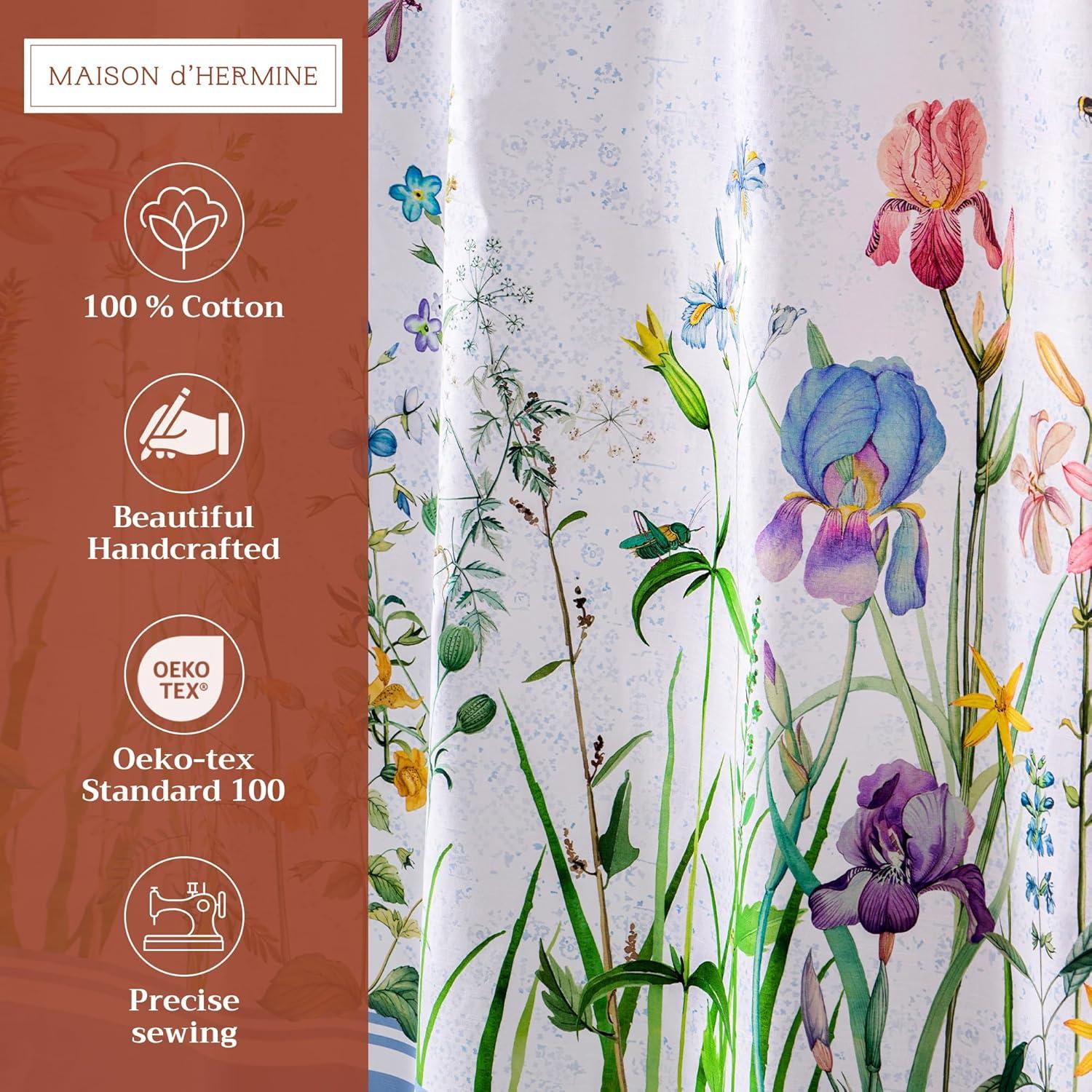 Maison d’ Hermine Shower Curtain 100% Cotton One Panel 70″x72″ Washable Fabric Shower Curtains for Bathroom, Easy Hanging with 12 Button Holes – Home, Farmhouse, Hotel, Spa (Luxury Loft – Peach)(07 – Meadow Florals)
