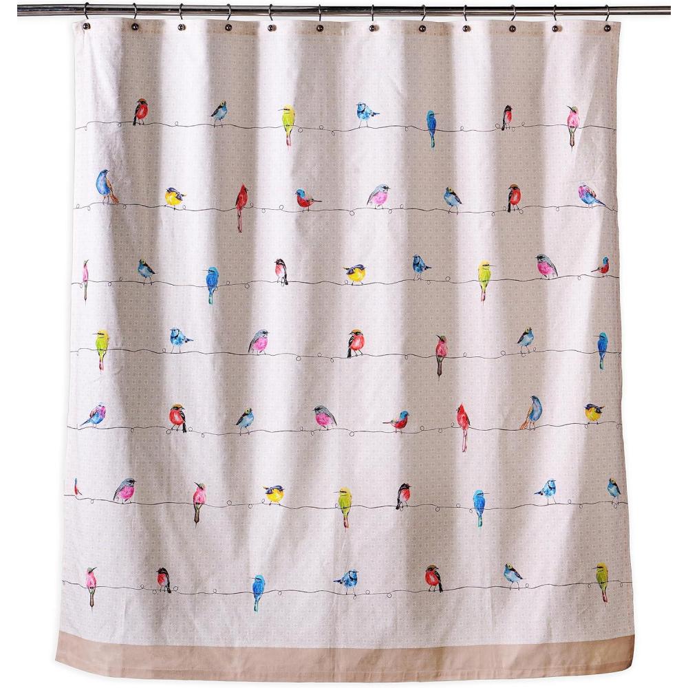 Maison d’ Hermine Shower Curtain 100% Cotton One Panel 70″x72″ Washable Fabric Shower Curtains for Bathroom, Easy Hanging with 12 Button Holes – Home, Farmhouse, Hotel, Spa (Birdies On Wire)(32 – Summer Whisper)