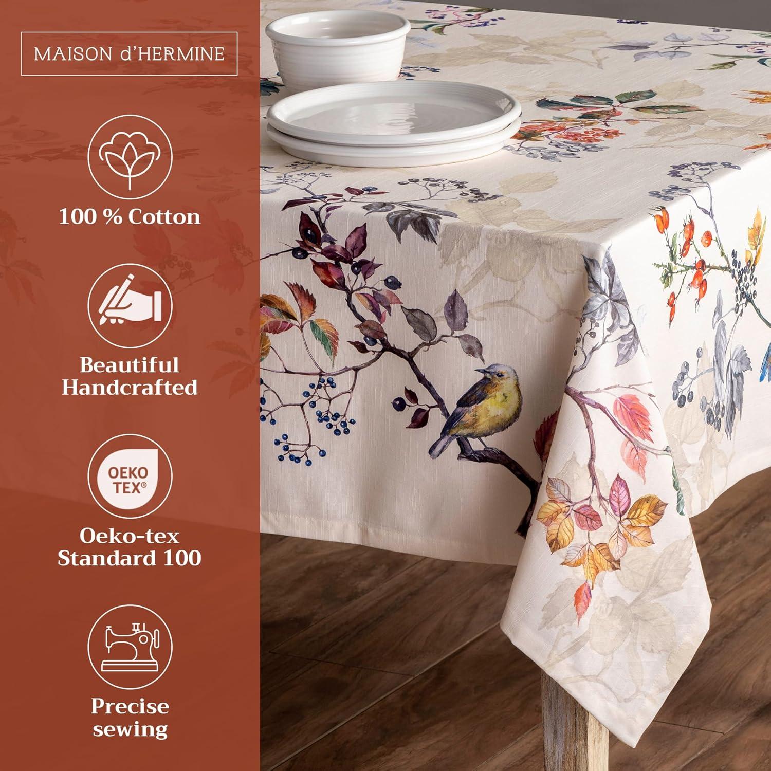 Maison d' Hermine Table Cloth Rectangle Table 100% Cotton 60 x 120 Inches Fall Tablecloth Reusable Everyday Use for Thanksgiving Christmas Decorations Dining Farmhouse Party (Equinoxe - Beige)