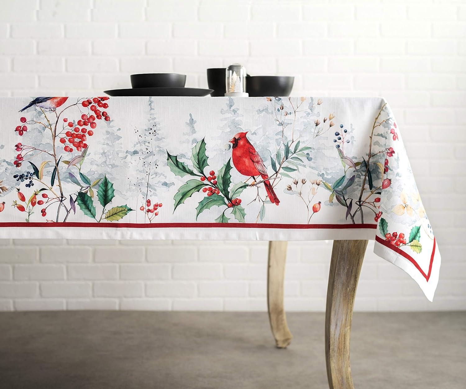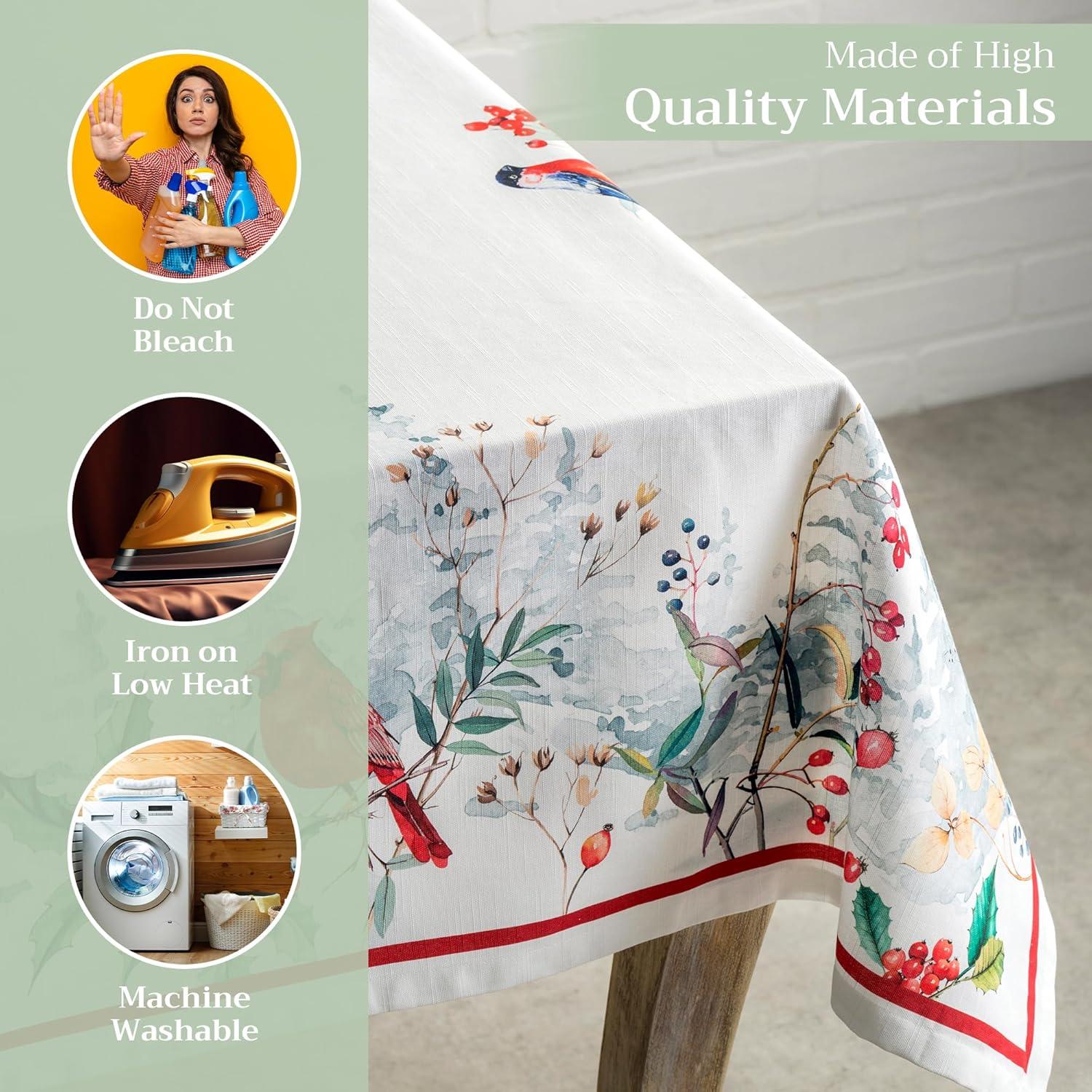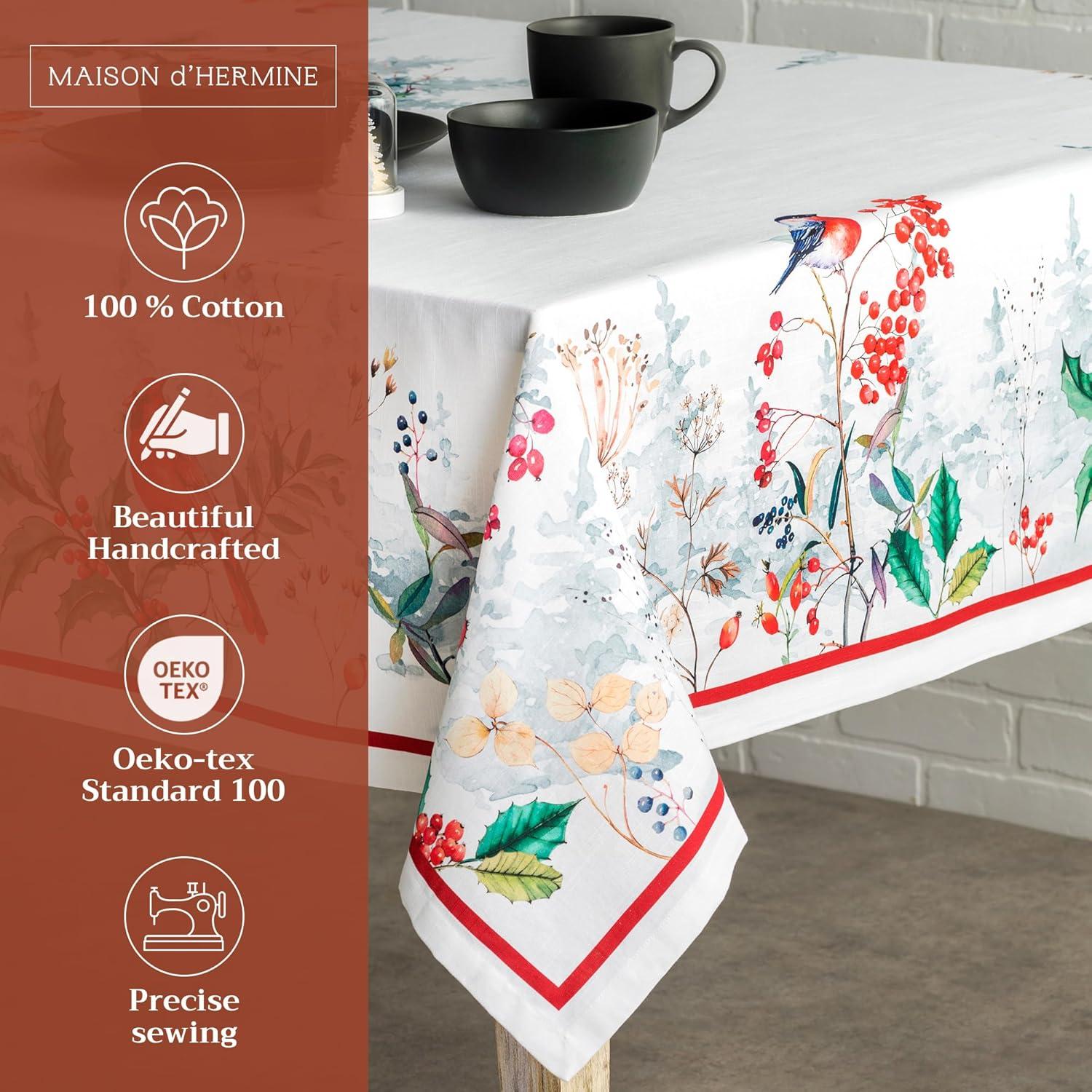 Maison d’ Hermine Table Cloth Rectangle Table 100% Cotton 60 x 120 Inches Fall Tablecloth Reusable Everyday Use for Thanksgiving Christmas Decorations Dining Farmhouse Party (Noel)