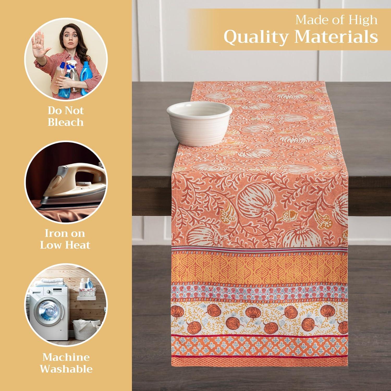 Enhance Your Home: Crafted from 100% cotton, this reusable table runner adds a warm, seasonal touch to your dining decor. Ideal for Thanksgiving, Halloween decorations, or Christmas decorations—pair it with matching linens for an elegant fall or holiday gift